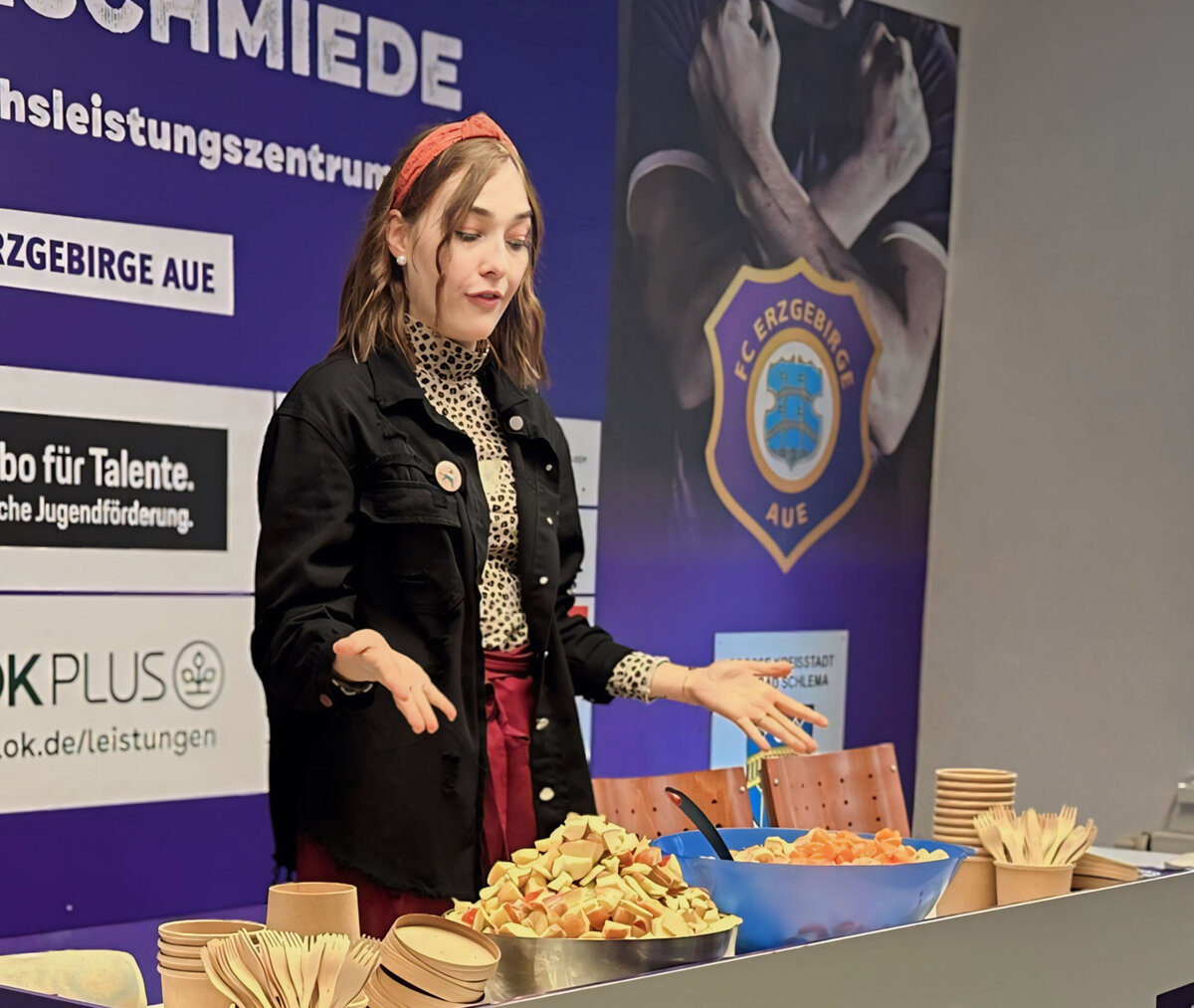 Wie wichtig neben Sport die gesunde Ernährung ist, erfuhren die Kleinen beim anschließenden Workshop mit den „Alltagshelden“, der die Freude an gesunder Ernährung fördern sollte. Dabei lernten sie, wie sie ihren Alltag nachhaltig gestalten und nicht verschwenderisch mit Lebensmitteln umgehen, um die Umwelt zu schonen und sich um die Welt von morgen zu kümmern. Am Ende zauberten sie gemeinsam einen leckeren Obstsalat aus geretteten Lebensmitteln.