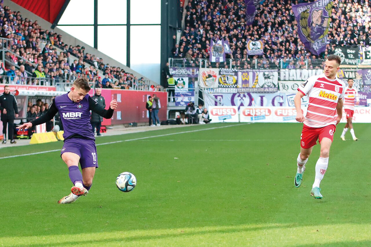 Ein Support, den ein Neunzehnjähriger gerade dann braucht, wenn ihm wie letzte Woche in Saarbrücken ein Handspiel passiert. Franco weiß, dass er zulegen muss: „Mehr Cleverness, in Drucksituationen konsequent verteidigen, Flanken schärfer und gezielter schlagen…” Auch offensive Qualitäten will der schnelle Rechtsverteidiger als „gelernter Stürmer” einbringen. Hauptziel sei nun, sich für weitere Einsätze zu empfehlen. Franco Schädlich möchte beweisen, dass es Auer Eigengewächse in den Profikader schaffen können. Zugleich verliert der 19-Jährige eine spätere Berufsalternative nicht aus dem Auge: „Ich hoffe, noch lange Fußball spielen zu können, will noch viel erreichen. Trotzdem habe ich ein Sportmanagement-Fernstudium an der Nürnberger ESM-Academy aufgenommen. Denn auch nach der Profizeit möchte ich ,am Ball bleiben’. Etwas in Richtung Fitness, Nachwuchsarbeit oder auch als Sportlehrer, dafür will ich jetzt schon Weichen stellen.”
