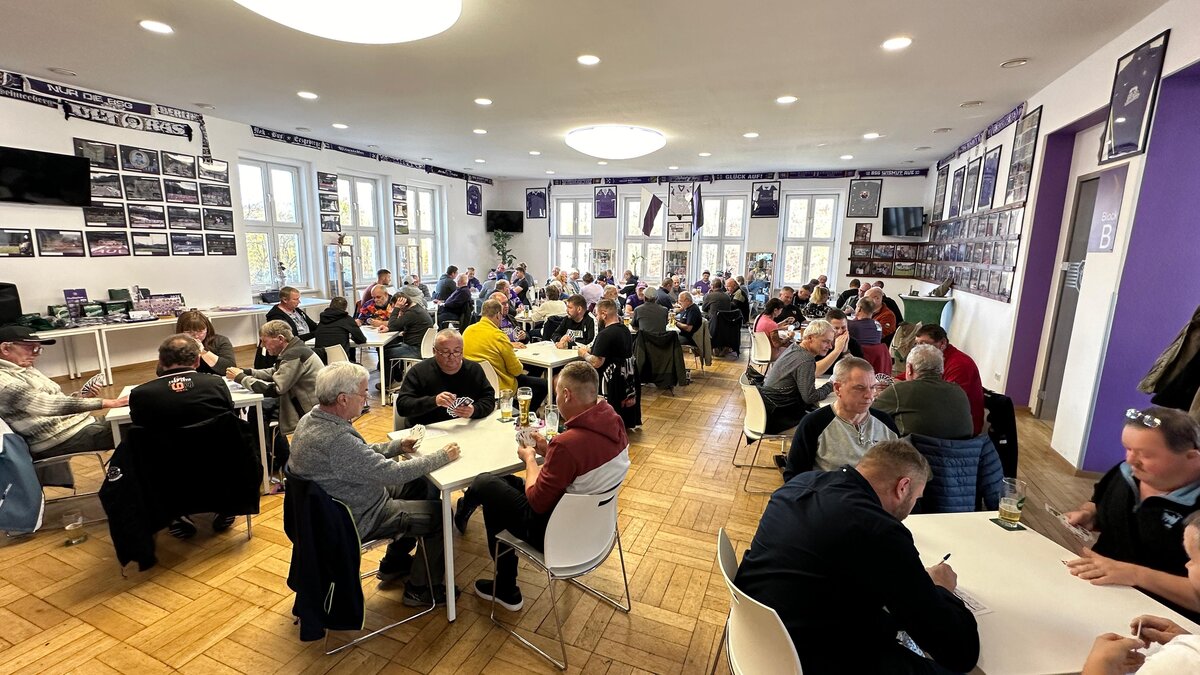 Das traditionelle Skat-Turnier des FC Erzgebirge Aue erlebte am vergangenen Sonntag im „Stadionblick“ eine Veranstaltung mit Dreien: Jubiläum, Rekord und Premiere. Bei der 10. Auflage sicherte sich mit Ulrich Haberland erstmals ein „Skat-Bruder“ zum zweiten Mal die Siegertrophäe, mit 71 Kartenspielern verzeichnete die Veranstaltung zudem eine Rekordteilnahme.