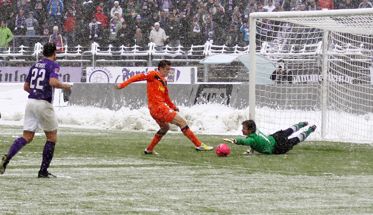 Winterreifen sollte jeder von Oktober bis Ostern aufziehen und gerade im Erzgebirge halten sich alle besser daran. Auf Glatteis und Neuschnee rutschen einige gerne mal aus und die fußballerische Form des Blitzeises erlebte der VfL Bochum schmerzhaft im Oktober 2012. Dabei konnte vor der Partie niemand ahnen, in welche Richtung es gehen würde. Der FC Erzgebirge Aue war unter Trainer Karsten Baumann schleppend in die neue Saison gestartet. Nur zwei Siege gab es in den ersten zehn Spielen zu feiern, die beiden Ostduelle gegen Cottbus und Dresden hatte man verloren und in der Offensive klemmte es gewaltig. Ähnlich ging es den damaligen Gästen aus dem Ruhrgebiet, die vor dem Treffen mit Aue gegen die Spitzenmannschaften aus Braunschweig und von der Berliner Hertha verloren hatten und ebenfalls im Tabellenkeller hängten. Bei beiden Mannschaften klemmte es kräftig in der Offensive und so konnten selbst die größten Optimisten vor dem Anpfiff nur auf eine Abwehrschlacht hoffen. Aber dann kam der Schnee.