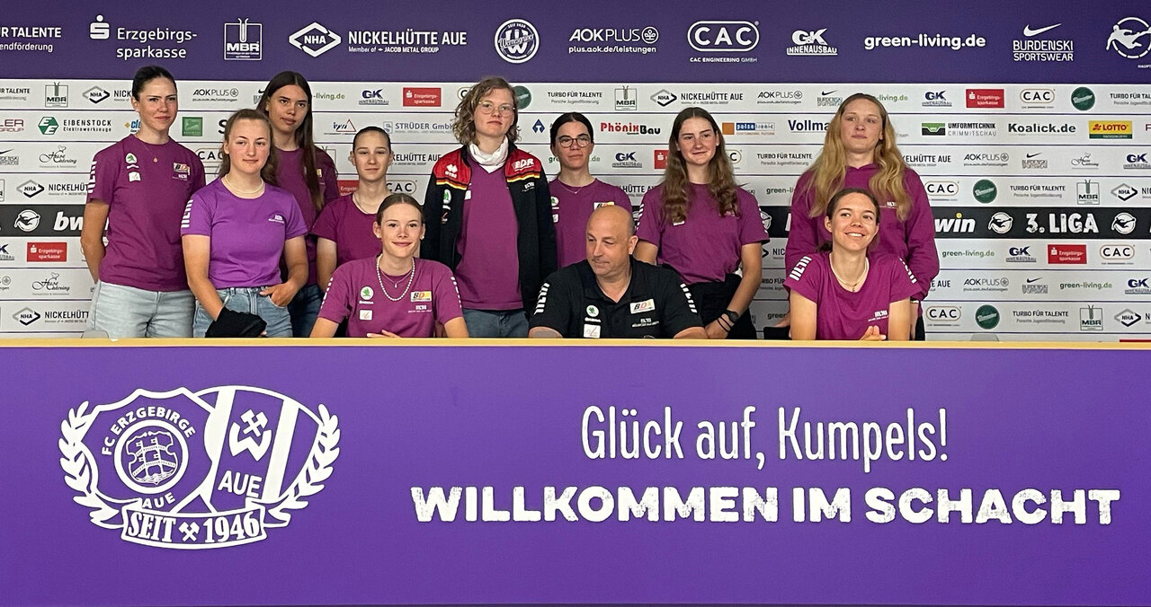 Noch ist Sommerpause im Erzgebirgsstadion, von Ruhe kann dennoch keine Rede sein. Denn am Montagvormittag war „Leistungssport“ zu Gast. Besonders schneller. Die deutschen Bahnrad-Juniorinnen nutzten ihren Aufenthalt in Aue in Vorbereitung des Saison-Höhepunkts für eine ausführliche Besichtigung.