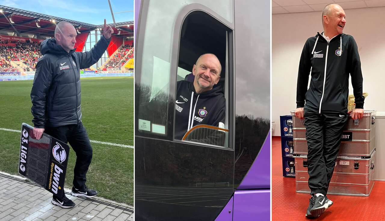 Bei Auswärtsspielen ist Thomas Romeyke seitdem also der wichtigste Mann beim FC Erzgebirge Aue. Er plant nicht nur die Reisen mit Hotelbuchung, Bus beladen und Kabine einräumen – er sitzt auch noch höchstpersönlich am Steuer. Mehr Verantwortung geht kaum. Unter Trainer Dirk Schuster avancierte die gute Seele des Teams dann 2020 sogar zum „Lebensretter“. Auf dem Weg nach Nürnberg verhielt er sich bei einem unverschuldeten Unfall instinktiv richtig und bekam von Dima Nazarov nach dessen Tor zum 1:1-Endstand öffentlichkeitswirksam den Dank für dessen Unversehrtheit. Das war allerdings die Ausnahme. Für gewöhnlich deckt Thomas Romeyke all die anstehenden Aufgaben im Verborgenen ab. Unauffällig, gewissenhaft und pünktlich. Mannschaft und Trainerstab wissen, was sie am Tausendsassa am Steuer haben.