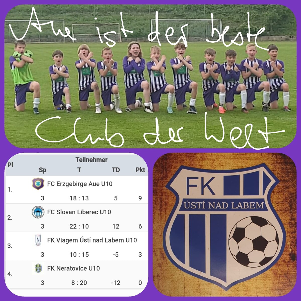 Am Wochenende war die U10 des FCE zu einem dreimal 40 Minuten-Test in unser Nachbarland Tschechien eingeladen, wo Neratovice, Usti nad Labem und Slovan Liberec Gegner waren. In allen drei Spielen haben sich die E-Junioren aus dem Erzgebirge mutig und unzähmbar gezeigt. In den beiden letzten Spielen lagen sie jeweils 2:0 zurück und haben die Spiele durch ihren starken Einsatz, Willen und ihr gutes Zusammenspiel jeweils zum 6:4-Sieg gedreht!