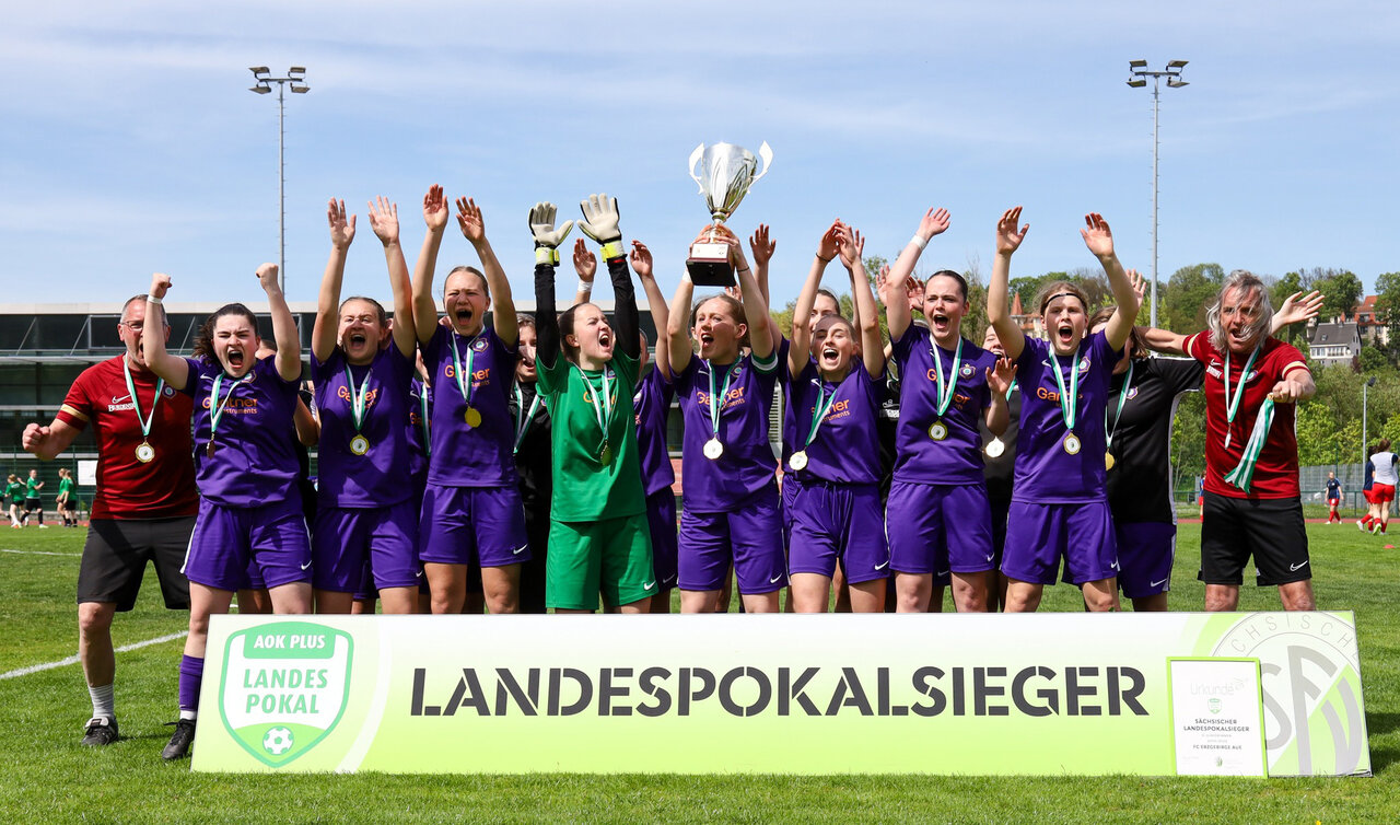 Geduld zahlt sich aus, intensives Training wird belohnt. Nachdem die B-Juniorinnen des FC Erzgebirge Aue im Vorjahr noch das Nachsehen hatten, holten sich die Mädchen in lila-Weiß am Mittwoch nun den sächsischen Landespokal in einem nervenaufreibenden Krimi vom Elfmeterpunkt gegen FFC Fortuna Dresden. Herzlichen Glückwunsch!