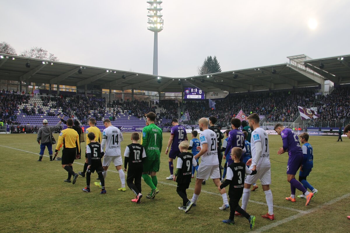 Nach mehr als vier Wochen Winterpause rollt der Ball im Lößnitztal wieder. Zum ersten Pflichtheimspiel im neuen Jahr empfingen die Veilchen den SSV Ulm. Eine besondere Partie, nicht nur wegen der Tabellensituation. Seit Ende des vergangenen Jahres werden die Spatzen vom langjährigen Auer Übungsleiter Pavel Dotchev trainiert. Zudem stehen mit Elias Löder, Paul Besong, Niko Vukancic und Mirnes Pepic noch vier ehemalige Spieler der Lila-Weißen im Kader der Ulmer. Über allem stand jedoch der sportliche Wettbewerb. Um in der Tabelle einen großen Schritt aus dem Keller zu machen, zählte nur ein Dreier. Dafür stellte Jens Härtel in der Startelf zweimal um. Pascal Fallmann rückte wieder auf die rechte Abwehrseite und Jonah Fabisch ersetzte wie schon in Rostock den verletzten Erik Majetschak.