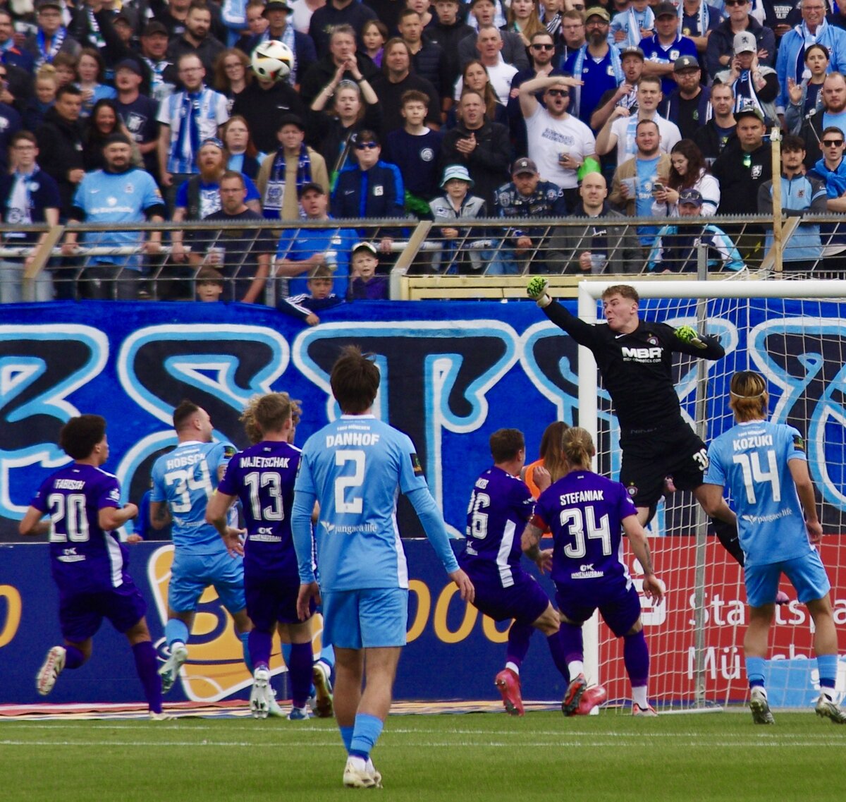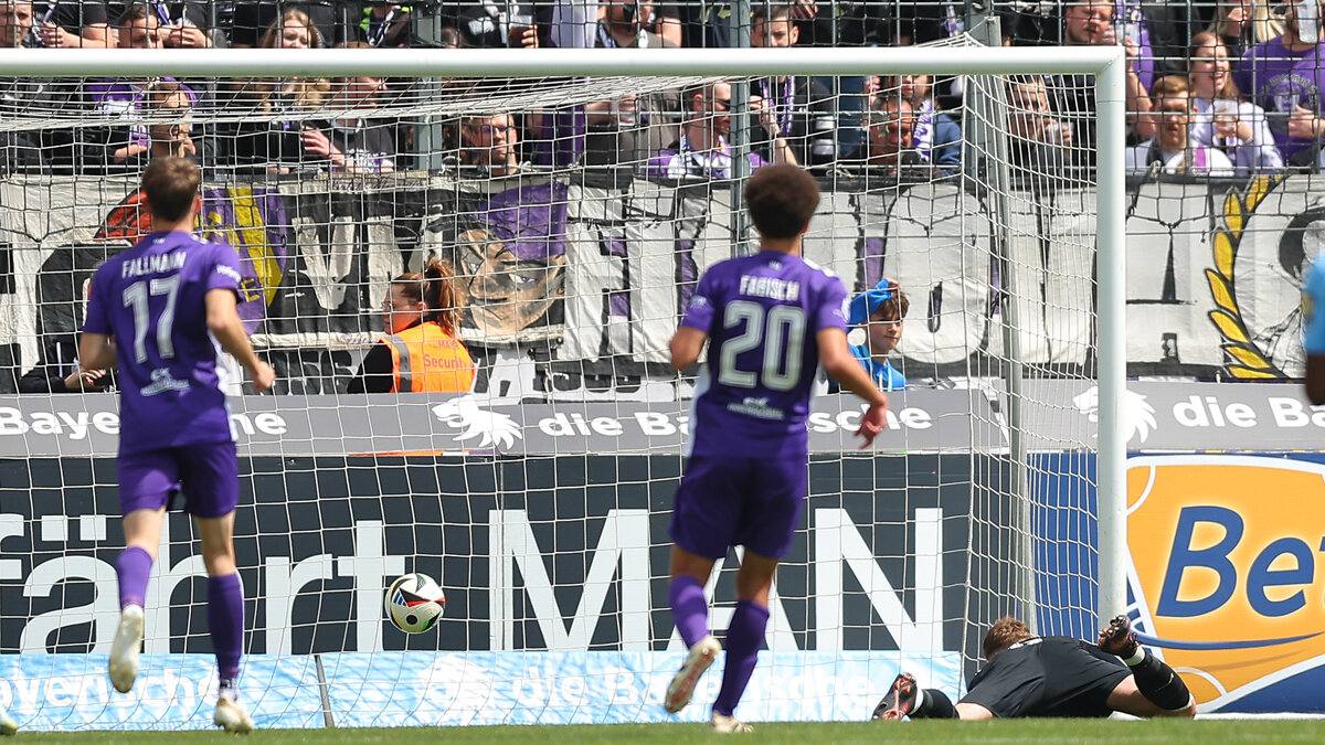 Das Spiel auf Giesings Höhen war keine zwei Minuten alt, da stellte es ein langer Diagonalball von Mirnes Pepic schon auf den Kopf. Der Vorstoß wäre wahrscheinlich schnell verpufft, aber in der Münchner Abwehr patzte ausgerechnet der Ex-Auer Tim Danhof und tauchte unter dem Spielball durch. Plötzlich war Kilian Jakob frei durch und der Münchner Junge im Dress der Veilchen, der in der kommenden Saison wieder für 1860 spielen wird, zog das Tempo an, ging in den Strafraum und legte die Kugel mit viel Übersicht quer. Sean Seitz war zur Stelle und drückte das Leder nur noch über die Linie und brachte Aue vor den 1500 mitgereisten Fans früh in Führung. 1:0 - der Auer Kaltstart war geglückt. Das früheste Tor am letzten Spieltag.