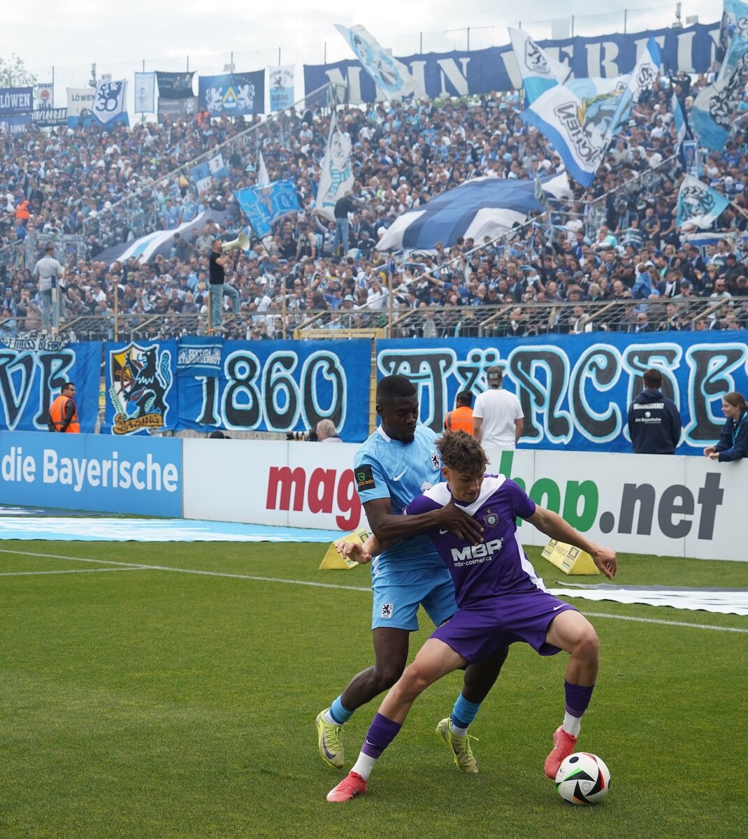 Mit dem letzten Tanz an der Grünwalder Straße endet für die Veilchen eine turbulente Spielzeit in der 3. Liga. Nach einer schwierigen Rückrunde, die maßgeblich von Verletzungen bestimmt war, konnte die Mannschaft von Jens Härtel keinen größeren Sprung mehr im Saisonfinale machen. Dennoch waren die Veilchen gefordert, denn in der Fremde hatte der FCE seit über zwei Monaten nicht mehr in der Liga gewonnen und gleichzeitig war das Spiel im Münchner Süden die letzte Generalprobe vor dem Pokalfinale in der kommenden Woche gegen Lok Leipzig. Wäre da nicht die angespannte Personalsituation. Mit Ali Loune und Boris Tashchy fielen erneut zwei Stammspieler vor der Partie aus und Jens Härtel baute erneut um. Mit Kilian Jakob, Steffen Nkansah und Omar Sijaric kamen drei neue Feldspieler zum Zug und im Tor feierte ein echtes Auer Eigengewächs mit Max Uhlig sein Profi-Debüt. Mit der letzten Kapelle ging es ins Traditionsduell gegen 1860 und trotz schlechter Vorzeichen sorgten die Veilchen für die erste positive Überraschung.