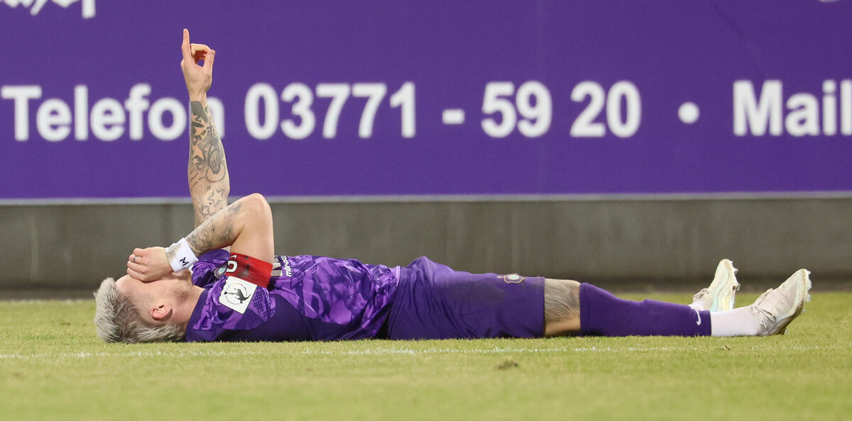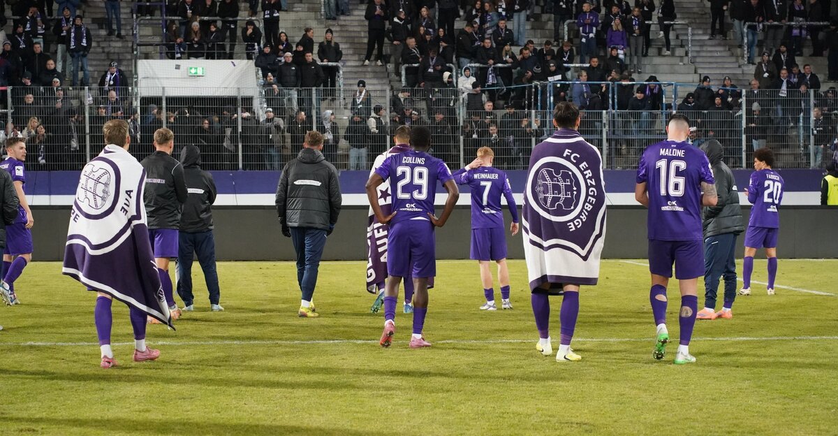 Die Mannschaft von Sabrina Wittmann lauerte und gab das Verbarikadieren langsam auf. Louis Lord bekam in der zweiten Halbzeit fast nichts zu tun, musste in der 70. Minute aber hellwach sein. Wieder hatte Max Besuschkow einen gefährlichen Ball in den Strafraum geschlagen und fand damit am langen Pfosten Außenverteidiger Hoppe. Lord parierte und verhinderte den erneuten Rückstand. Die Zeit tickte und gerade als sich die Gäste wieder aus der eigenen Hälfte hervorwagten, gelang Aue der nächste Nadelstich. Natürlich ging es wieder über die rechte Seite. Diesmal brachte der eingewechselte Eric Uhlmann die Kugel in die Mitte und diesmal hatten die Schanzer Jonah Fabisch aus den Augen verloren. Der Mittelfeldspieler köpfte punktgenau und vom Innenpfosten sprang die Kugel in die Maschen. 2:1 – für Erzgebirge Aue. Die Veilchen hatten das Spiel gedreht, aber entschieden war die Partie lange nicht.