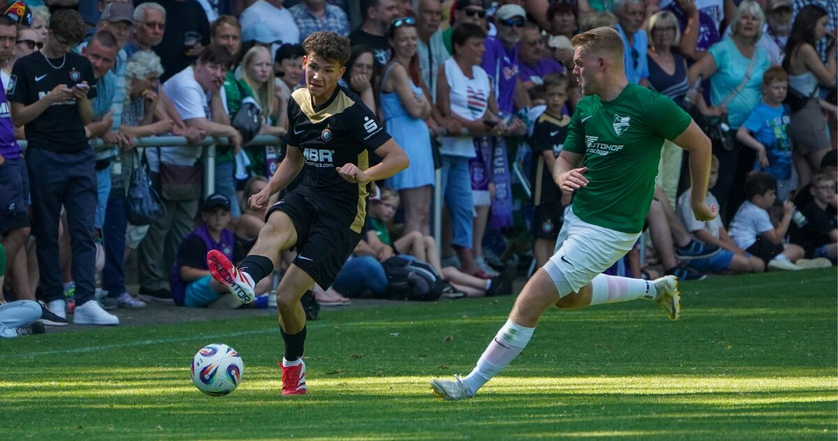 Max Uhlig hätte ins Thalheimer Waldstadion laufen können von seinem Elternhaus, der 18-jährige Keeper wohnt in Meinersdorf fast um die Ecke. Ein echter Erzgebirger, der seine Fähigkeiten bereits am letzten Spieltag 2024/25 im Auswärtsspiel des FCE beim TSV 1860 München eindrucksvoll unter Beweis stellte. Der athletische Torhüter aus dem Nachwuchsbereich verteilte bei seinem „Heimspiel“ keineswegs Geschenke zum Stadtfest an die Thalheimer Gastgeber, parierte mehrfach stark und machte einfach nur seinen Job – zu Null. Zum „Ärger“ seiner Thalheimer Kumpel, denen Max Uhlig den verdienten Ehrentreffer verwehrte.
