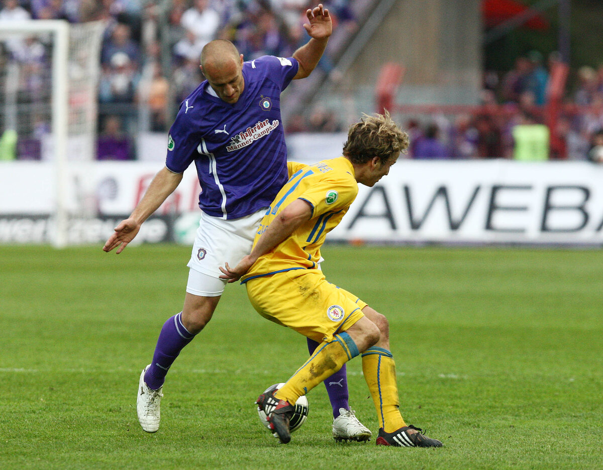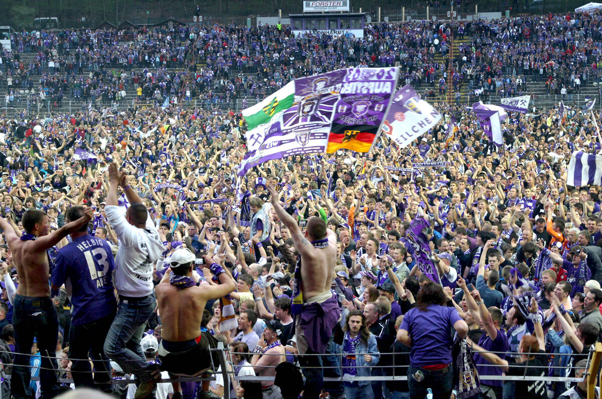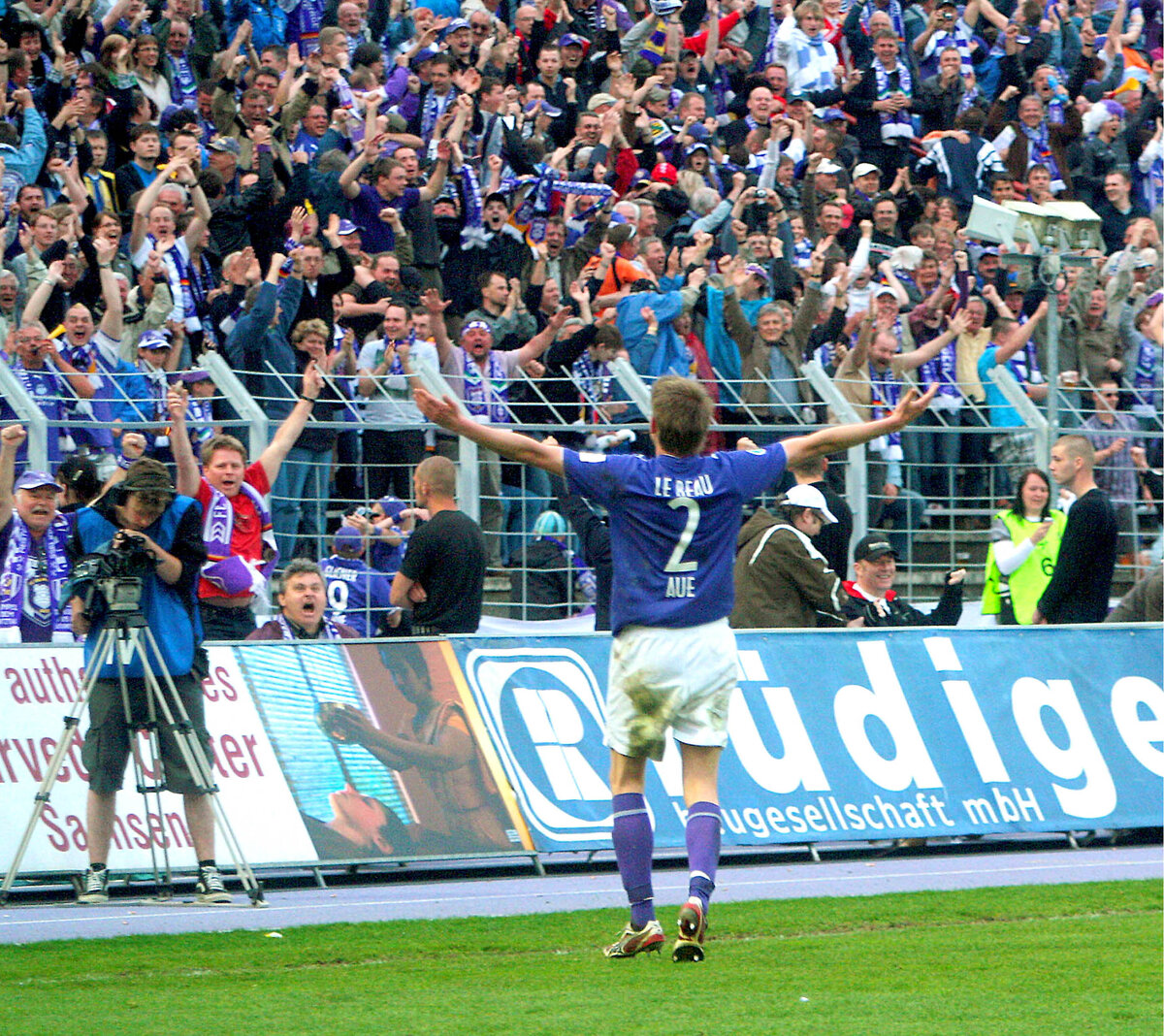 In einem weiten Bogen zirkelt sich der Ball im Lößnitztal in den Strafraum. 16.400 Fußball-Fans halten an diesem 30. April in der 85. Minute den Atem an. Im Gedränge der Lilanen und Gelben steigt ein echtes Auer Eigengewächs am höchsten. Platziert köpft er gegen die Laufrichtung des Torwarts und der Ball zappelt in den Maschen. 2:1 - Pierre Le Beau köpft den FCE an jenem 30. April 2010, also vor exakt 15 Jahren, zum Aufstieg in die 2. Bundesliga. Das Stadion und das Erzgebirge stehen Kopf an diesem denkwürdigen Tag.