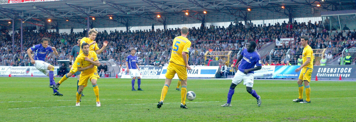Das erste Mal stand das Erzgebirgsstadion Kopf und die Auer Anhänger träumten im alten Oval schon vom deutschen Unterhaus. Wäre da nicht Braunschweigs Mirko Boland gewesen. Der Linksfuß im Dress der Eintracht kam nur zehn Minuten nach der Auer Führung vor dem Strafraum an den Ball. Gefühlvoll zirkelte Boland den Ball an Martin Männel vorbei ins Dreiangel. 1:1 und ein Unentschieden reichte den Veilchen nicht. Die Konkurrenz schenkte ebenso nicht ab, in der 2. Hälfte drehte der VfL Osnabrück sein Heimspiel gegen die Kieler Störche und der FC Ingolstadt fertigte den SV Wehen in Wiesbaden gnadenlos mit 5:1 ab. Sollte der FCE das Spiel gegen die Eintracht herschenken, würde es am letzten Spieltag zum Showdown kommen. Der Ausgleich gab Braunschweig neues Selbstvertrauen. Trainer Lieberknecht hatte mit Smail Morabit und Kingsley Onuegbu zwei neue Stürmer ins Spiel geworfen und die Joker hätten die Partie wenden können. Wenige Minuten nach dem Treffer von Boland steckte Onuegbu auf Morabit durch. Der schnelle und wendige Offensivspieler legte sich den Ball an Martin Männel vorbei und traf dann aus spitzem Winkel nur das Außennetz. Wenige Augenblicke später hätte die Führung für die Eintracht fallen müssen. Die Gäste kombinierten sich über die linke Seite und Verteidiger Ken Reichel brachte eine scharfe Hereingabe in den Strafraum. Onuegbu hätte zum Auer Partycrasher werden können, aber direkt vor dem Tor versagten dem Stürmer die Nerven und wie durch ein Wunder rauschte die Kugel links am Auer Kasten vorbei.