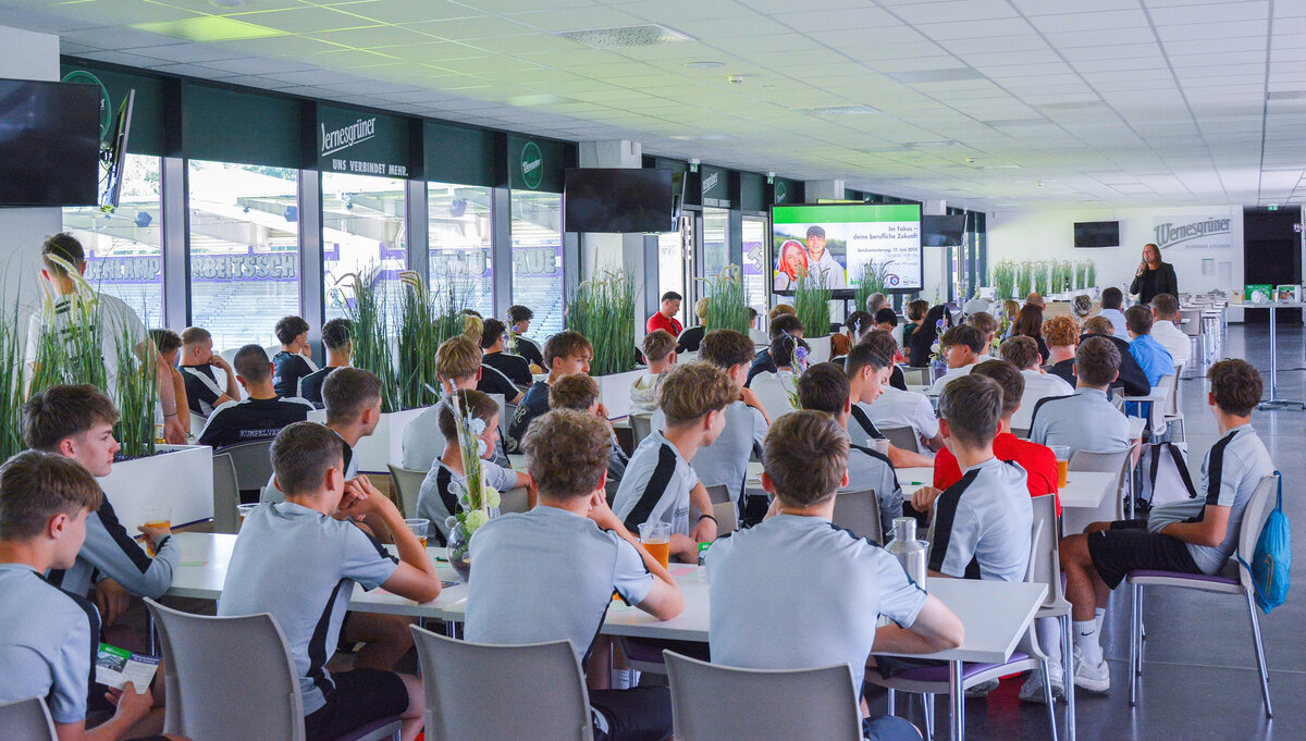 Die Wernesgrüner Lounge des Erzgebirgsstadions war Austragungsort des Berufsinformationstages vom Bildungswerk der Sächsischen Wirtschaft in Kooperation mit Sachsenmetall. Für den FCE als Partner eine ideale Plattform, um jungen Sportlern eine berufliche Perspektive in Form von Ausbildungsplätzen aufzuzeigen.
