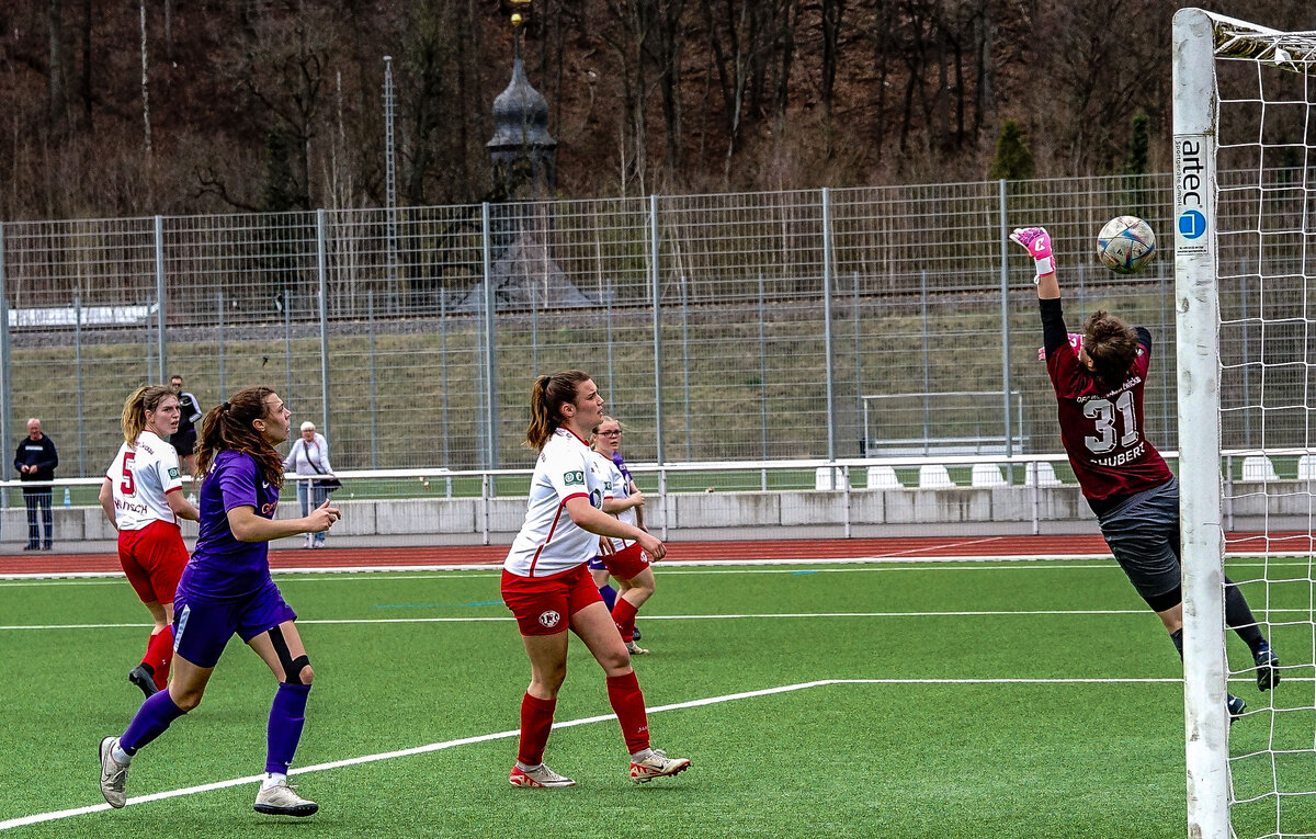 In einer intensiv geführten ersten Halbzeit übernahm Aue über weite Strecken die Kontrolle, erspielte sich einige gute Chancen, blieb im Abschluss jedoch glücklos. Auf der anderen Seite wurde es zweimal brenzlig im Auer Strafraum: Ein Heber der Gäste ging knapp über das Tor, eine weitere große Möglichkeit vereitelte Torhüterin Paula Püschmann im Eins-gegen-Eins und klärte souverän zur Ecke.