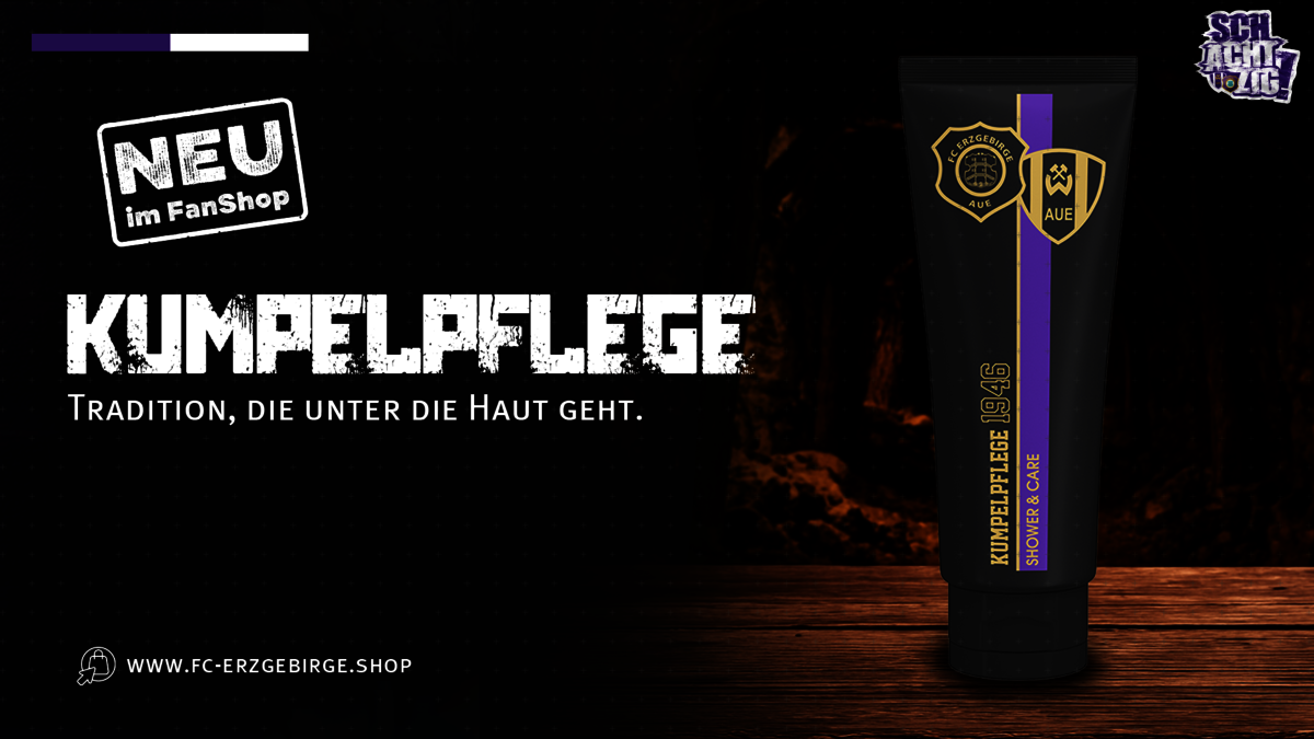 Der FC Erzgebirge Aue hat in enger Kooperation mit seinen Partnern erstmals ein eigenes Pflegeprodukt entwickelt. Die KUMPELPFLEGE 1946 ist ab sofort im Fan- und Onlineshop des Kumpelvereins erhältlich.