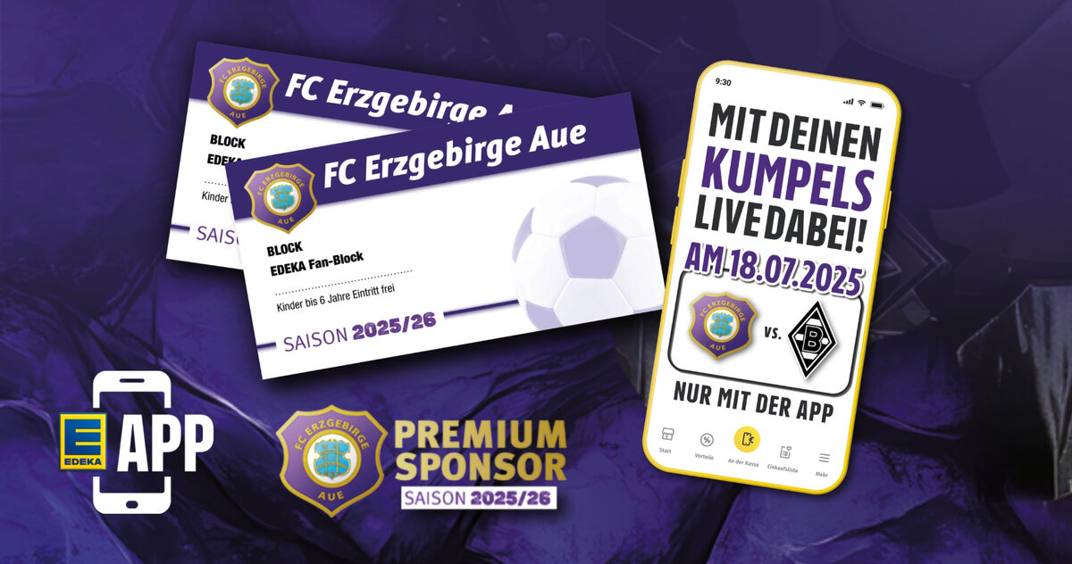 In knapp drei Wochen steht beim FC Erzgebirge Aue der Höhepunkt der Sommer-Vorbereitung im Terminkalender. Für das Testspiel gegen Bundesligist Borussia Mönchengladbach am 18. Juli 2025 um 17.30 Uhr verlost FCE-Partner Edeka per Gewinnspiel insgesamt 300 Tickets für den Edeka-Fanblock und bietet vor allem Kindern „Action“ auf dem Stadiongelände.