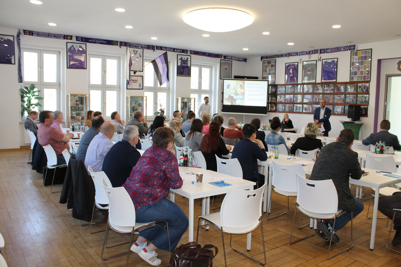 Die Wahl des Erzgebirgsstadions für das Netzwerktreffen des Personaldienstleisters Randstad am 30. April kam bei den Teilnehmern super an. Der FCE-Sponsor hatte dazu Bürgermeister, Hauptamtsleiter sowie Personalverantwortliche öffentlicher Institutionen aus dem Erzgebirge und Südwestsachsen in die Gaststätte „Stadionblick” eingeladen. FCE-Vorstand Robert Scholz stellte den Gästen den größten Sportverein im Erzgebirge eingangs vor. Nach dem Workshop waren dann alle zur exklusiven Stadionführung eingeladen.