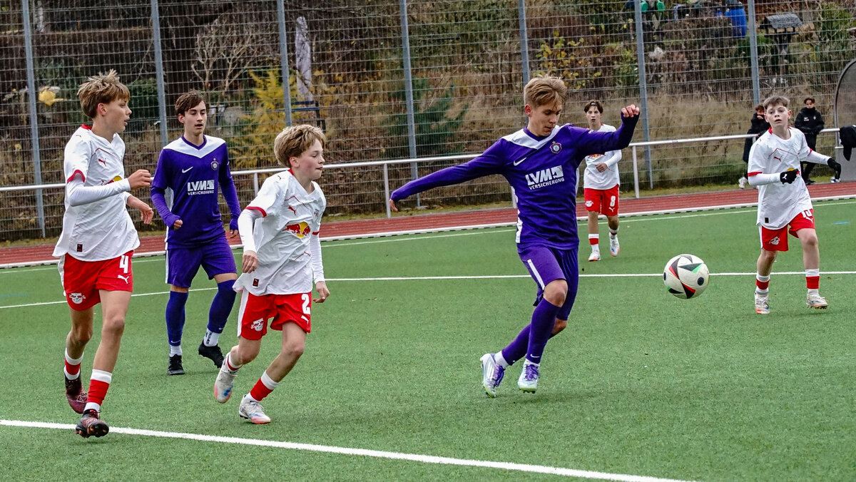 Die U14 trat bei Rotation Leipzig an und setzte sich verdient mit 2:1 durch, zeigte eine geschlossene Mannschaftsleistung mit vielen gewonnenen Zweikämpfen. Defensiv ließ Aue fast nichts zu – abgesehen vom Gegentor. Offensiv wurden die Chancen effektiv genutzt und die Treffer zum genau richtigen Zeitpunkt erzielt. Auf dem kleinen Platz waren spielerische Elemente nur begrenzt möglich. Dennoch wurden einige gute Angriffe herausgespielt, bei denen sich der FCE schnell und sauber nach vorne kombinierte. Eine insgesamt sehr starke Leistung von allen Beteiligten – geprägt von Kampf, Einsatz und Leidenschaft.