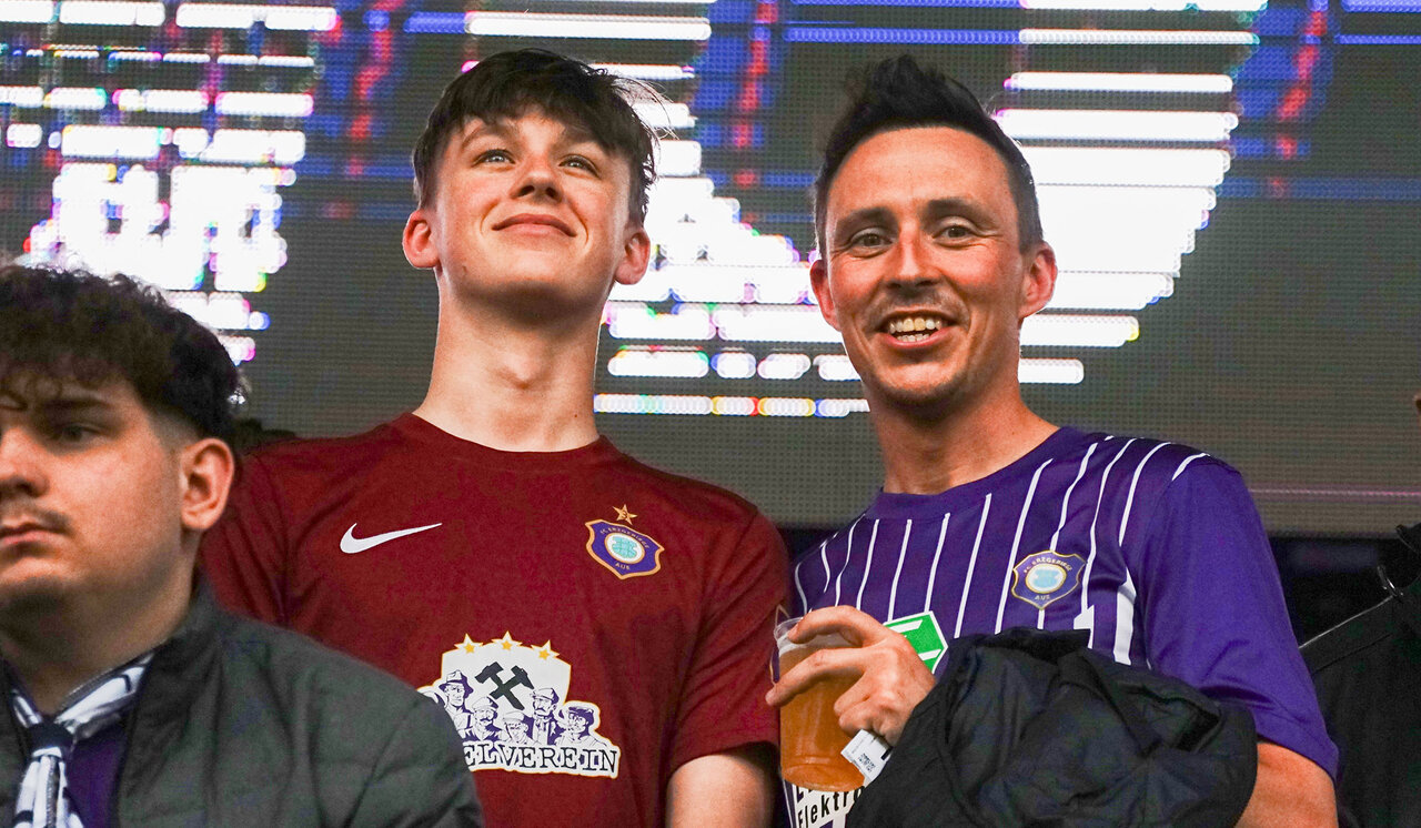 Der aktuelle Bundestrainer der Nordischen Kombinierer fand nach Abschluss der Weltcup-Saison endlich wieder Zeit für einen Ausflug ins Lößnitztal. Natürlich im FCE-Trikot mit dem Namenszug seines Kumpels „Hochscheidt“. Eric Frenzel, treues Vereinsmitglied, saugte die prächtige Atmosphäre vor 10.495 Fans ebenso auf wie Musikproduzent Rico von Stereoact beinahe in vorderster Front, Reihe eins. Ihre Herkunft haben die beiden Stars völlig verschiedener Branchen nie vergessen, die Sympathie für den Fußballclub aus dem Erzgebirge erst Recht nicht.