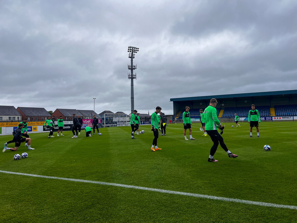Nach einem kurzen Zwischenstopp auf den Zimmern ging es direkt weiter zum Training. Geübt wurde im Mourneview Park, dem Stadion des Glenavon FC – dort, wo am Samstag das mit Spannung erwartete Rückspiel stattfindet.