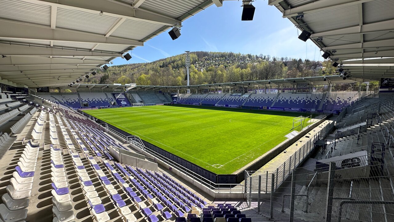 In maximal zwei Stunden erfahren die Teilnehmer Wissenswertes zur Historie des Vereins und des Stadions, genießen ganz nebenbei ein traditionelles Speckfettbrot und einen zünftigen Schnaps, erhalten an diesem Tag gegen Vorlage der Eintrittskarte 5 Euro Sofortrabatt im FanShop pro Einkauf an der Haupttribüne und können ihr Auto bequem auf dem Spezial-Parkplatz neben der Profi-Kabine abstellen. Der Steigermarsch als musikalische Einstimmung, der Gerd Schädlich-Gedenkstein und der virtuelle Rundgang auf dem Screen runden der Erlebnis Stadionführung ab. Viel Spaß!