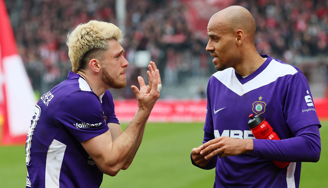 FC Erzgebirge: Männel – Nkansah, Majetschak, Rosenlöcher, Fallmann, Pepic, Fabisch, Jakob, Clausen (Seitz), Tashchy (Sijaric), Schmid (Burghardt)
