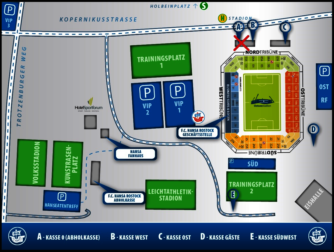 Hinweis: Entgegen zurückliegender Spiele werden keine Sammelparkplätze für Gästefans am Rostocker Hauptbahnhof zur Verfügung stehen. Daraus resultierend werden auch keine Shuttle-Busse zur Verfügung gestellt.