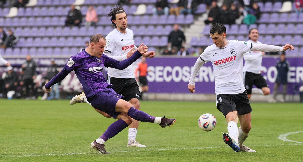 Unerbittlich schreitet die 3. Liga voran und biegt auf die Zielgerade ein. Während an der Spitze der VfL Osnabrück oder der SC Verl stehen, bleibt den Veilchen nur das Feld der Abgehängten. Nach einer rabenschwarzen Rückrunde haben die Männer aus dem Erzgebirge jeden Anschluss verloren. Ausgerechnet zum Abschluss der Englischen Woche kam der Angstgegner aus Ostwestfalen ins Lößnitztal. Seit über 20 Jahren konnte der FCE gegen Verl nicht mehr gewinnen und während die Kleinstadt aus dem Bielefelder Umland den großen Wurf und Aufstieg plante, drohte Aue der Abstieg in die Viertklassigkeit. Gegen all diesen Widerstand wollte Khvicha Shubitidze ankämpfen und schickte wieder eine Elf mit Doppelspitze auf das Feld. Ricky Bornschein sollte Marcel Bär unterstützen, während Julian Guttau und Erik Weinhauer auf den Flügeln wirken sollten. In der Abwehr wurde Pascal Fallmann durch Anthony Barylla ersetzt. Bei nassgrauem Aprilwetter ging es ins Spiel.