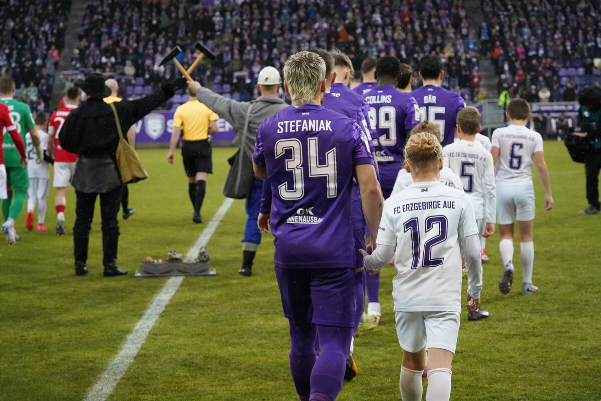 Der erste Sieg im neuen Jahr, er musste einfach her für die Lila-Weißen. Unmittelbar vor dem historischen 80. Vereinsgeburtstag standen die Erzgebirger auf einem Abstiegsplatz und drohten, den Anschluss in der Tabelle zu verlieren. Unter Neu-Trainer Christoph Dabrowski erarbeitete sich die Mannschaft zuletzt zwei Remis. Aber mit nur zwei Zählern war die Ausbeute seit der Winterpause einfach zu schwach. Nachdem es gegen die direkte Konkurrenz nicht klappte, wartete nun ein echter Brocken. Ins Erzgebirge reiste der Tabellenführer und Aufstiegsaspirant Energie Cottbus. Die Mannschaft von Pele Wollitz fegte wieder durch die 3. Liga und spielte den wohl attraktivsten und offensivstärksten Fußball der Liga. Gegen diese Elf sollten die Veilchen das Wunder schaffen und den ersten Sieg im neuen Jahr einfahren. Dafür stellte Dabrowski um und ersetzte den gesperrten Eric Uhlmann mit Julian Guttau und im Sturm bekam Jannic Ehlers nach seinem Debüt-Tor am vergangenen Wochenende das Vertrauen.