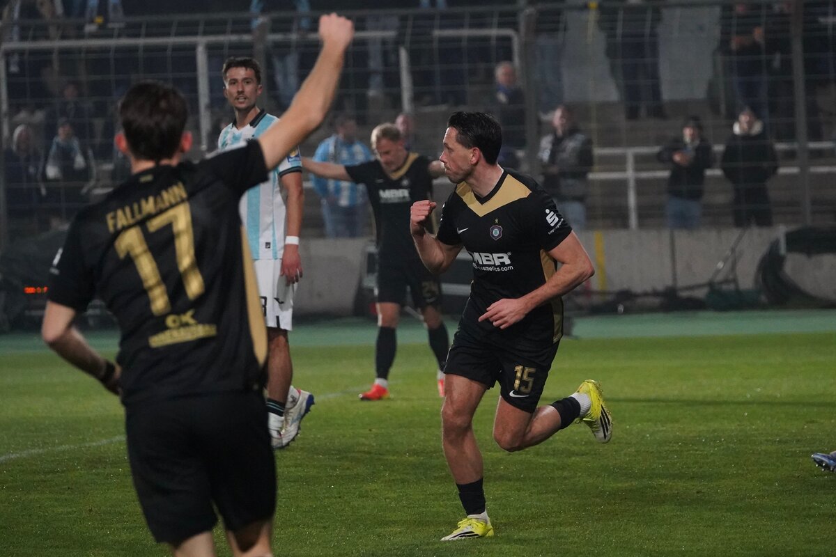 Gleich mit dem Anpfiff legten die Auer los. Innerhalb der ersten fünf Minuten erspielten sich die Veilchen drei Ecken und Luan Simnica und Julian Guttau verbuchten die ersten Chancen und der Start machte Hoffnung. Wären da nicht die Löwen. Die Mannschaft der Stunde, mit drei Siegen in Folge, steckte die kurze Drangphase gut weg und ging mit dem ersten Ausflug in den gegnerischen Strafraum in Führung. Ex-Bundesligaprofi Kevin Volland brachte sich an der Strafraumkante gut in Position und schoss auf das lange Eck. Diesen Schuss konnte Martin Männel noch parieren, den Nachschuss von Maximilian Wolfram aber nicht. Der Löwe stand goldrichtig und konnte zum 1:0 für Sechzig abstauben. Das Pech klebte mal wieder wie Teer an den Auern. Die erzgebirgische Antwort kam aber sofort. Gleich mit dem nächsten Angriff glichen die Schachter mit ihren beiden Ex-Löwen aus. Julian Guttau trieb den Ball an und suchte Marcel Bär. Über Umwege und im Getümmel kam der Ball auch dorthin und mit echtem Killerinstinkt netzte die Auer Lebensversicherung ein. 1:1 – Fehler behoben.