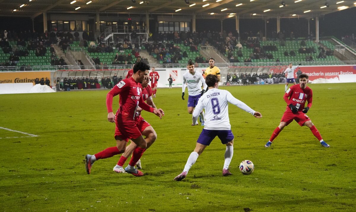 Frostige Zeiten – während der Winter Deutschland fest im Griff hat und die Temperaturen kaum über den Gefrierpunkt kommen, sind die Veilchen tief im Abstiegskampf festgefroren Mit zwei Niederlagen startete die Elf von Jens Härtel denkbar schlecht in die Rückrunde und nach dem bitteren Misserfolg in Rostock gab es am vergangenen Wochenende gegen Ulm eine schallende Klatsche. Mit 0:3 unterlagen die Veilchen zuhause den Spatzen und rutschten wieder unter den Strich. Gegen den TSV Havelse waren die Lila-Weißen nun zum Siegen verdammt, um die ersten Punkte im neuen Jahr zu sammeln. Jens Härtel stellte einiges um und brachte mit Vincent Ocansey gleich einen Neuzugang. Der ausgeliehene Stürmer aus Bielefeld rückte direkt in die Spitze und startete neben Marcel Bär. Defensiv begannen die Auer in einer neuen Grundformation. Mit Dreierkette und zwei flankierenden Schienenspielern ging es bei eiskalten Temperaturen und leichtem Nebel ins Freitagabendspiel.