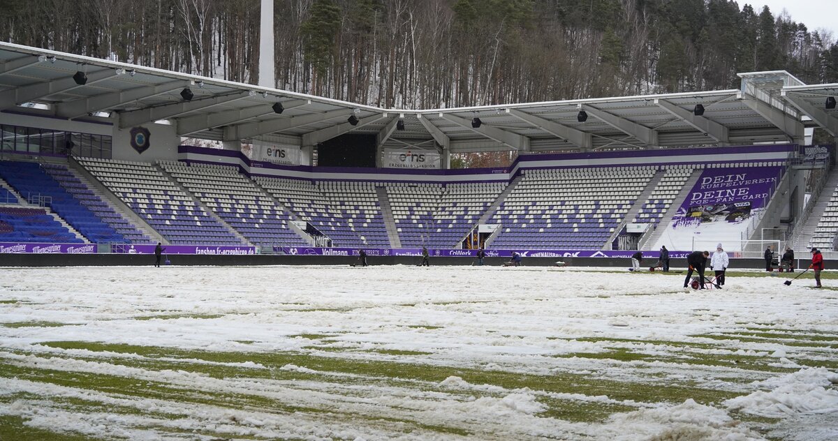 Das Testspiel gegen den Bundesligisten 1. FC Union Berlin am Montagabend um 18.30 Uhr findet wie geplant statt, die Schneeräumarbeiten laufen auf Hochtouren. Da auch die Wege rund um das eins-Erzgebirgsstadion geschoben werden sollen, bittet der FC Erzgebirge Aue um Hilfe. Ab sofort ist jede helfende Hand willkommen.