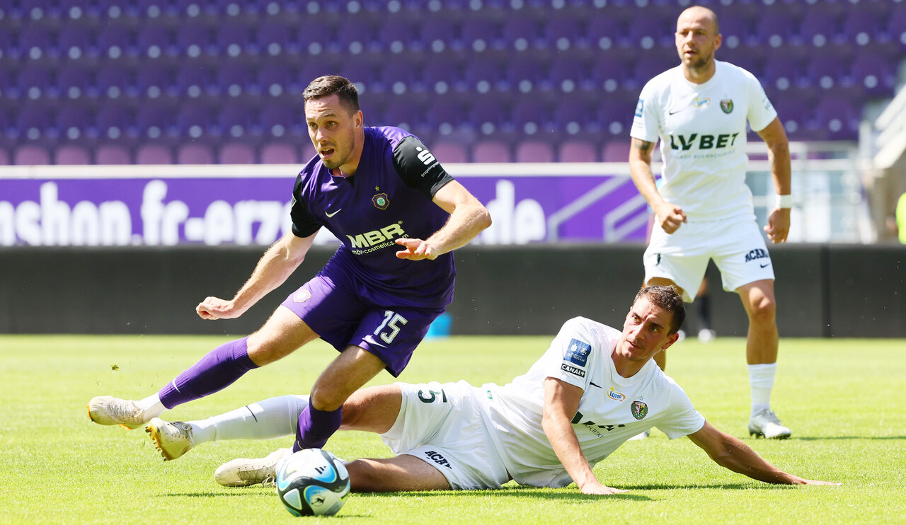Die Gäste aus Polen waren sofort auf Betriebstemperatur und hatten zwei Großchancen bereits nach wenigen Sekunden. Szwedzik erlief einen langen Ball und tauchte frei vor Martin Männel auf. Hellwach rückte der Veilchen-Kapitän aus dem Kasten und vereitelte die frühe Führung von Slask. Nur eine Minute später rettete dann nur noch das Aluminium. Zylla schnappte sich vor dem Sechzehner den Ball und zog sofort ab. Das Spielgerät klatschte an die Unterseite der Latte, sprang aber nicht ins Tor. Die Veilchen hatten Glück, nicht gleich einem Rückstand hinterherlaufen zu müssen.