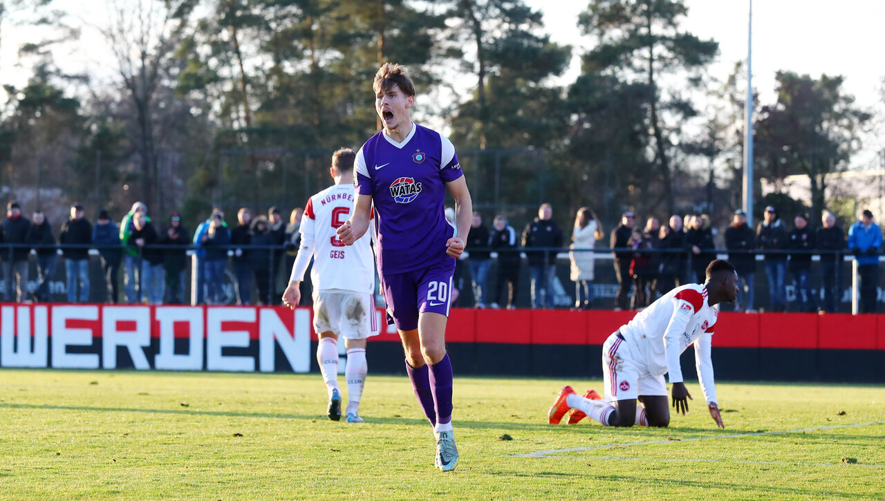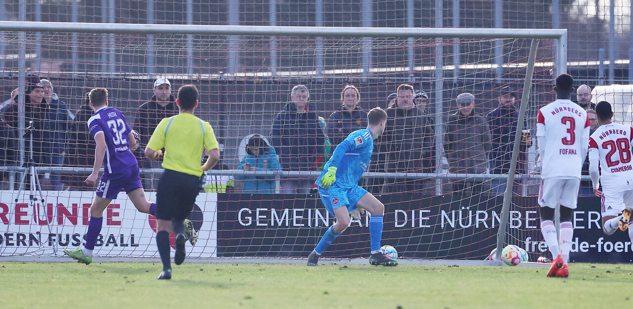 Die beharrliche Arbeit wurde dann in der 36. Minute belohnt. Nach starker Vorlage von Besong, der durch die Nürnberger Reihen lief, kam Huth frei vor Vindahl zum Abschluss und markierte den Anschlusstreffer. Beinahe wäre sogar der Ausgleich drin gewesen. Nur eine Minute später zog Stefaniak vom linken Flügel nach innen, seinen Schlenzer parierte Vindahl erneut sehenswert.