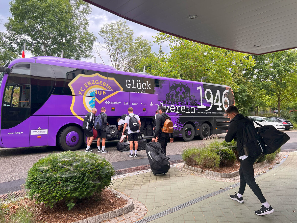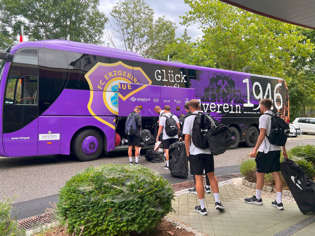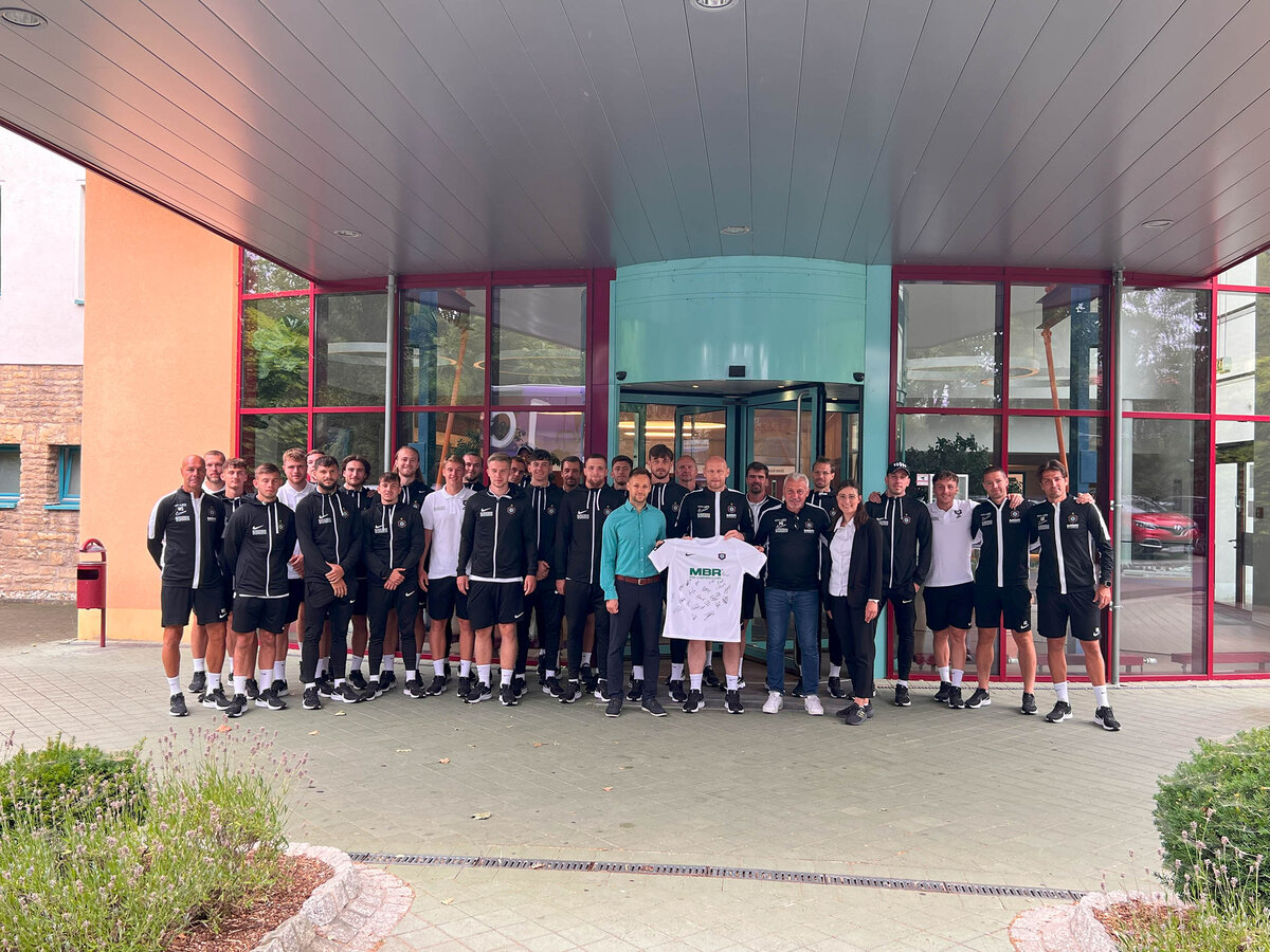Nach dem Frühstück packten wir unsere persönlichen Taschen in den Mannschaftsbus. Thomas Romeyke, unser Mannschaftsleiter, hatte bereits am Vorabend die Kisten und das Trainingsmaterial in den Bus geladen. Bevor wir jedoch die Heimreise ins Erzgebirge antraten, nahmen wir uns noch die Zeit, uns bei der Sportschule Bad Blankenburg für den angenehmen Aufenthalt zu bedanken. Als kleines Abschiedsgeschenk machten wir ein gemeinsames Foto und überreichten ein Trikot als Erinnerung.
