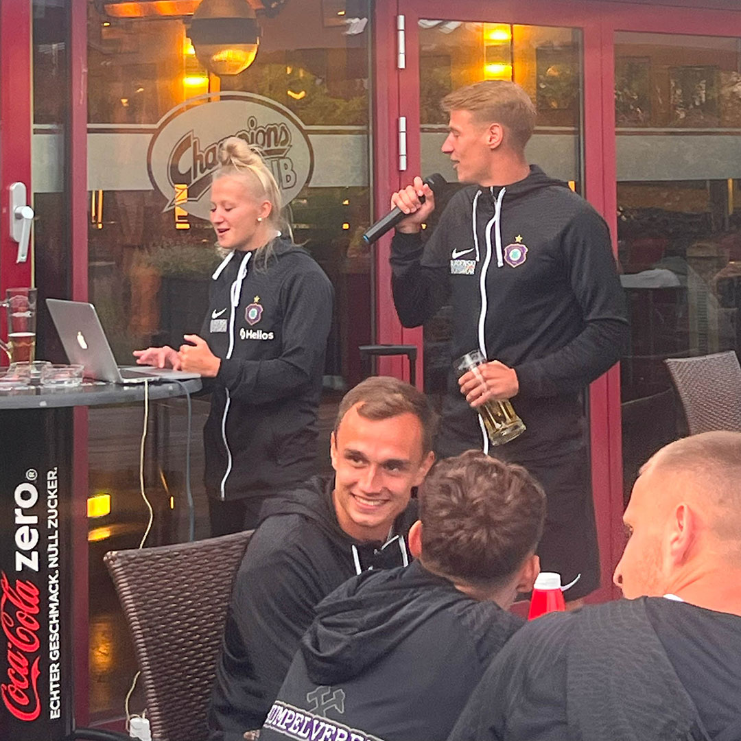 Werfen wir noch einen Blick zurück. Gestern Abend fand ein gemeinsamer Mannschaftsabend statt, bei dem unsere neuen Teammitglieder ihre musikalische Seite zeigten. Es war echt erstaunlich zu sehen, welches Talent in ihnen steckt.