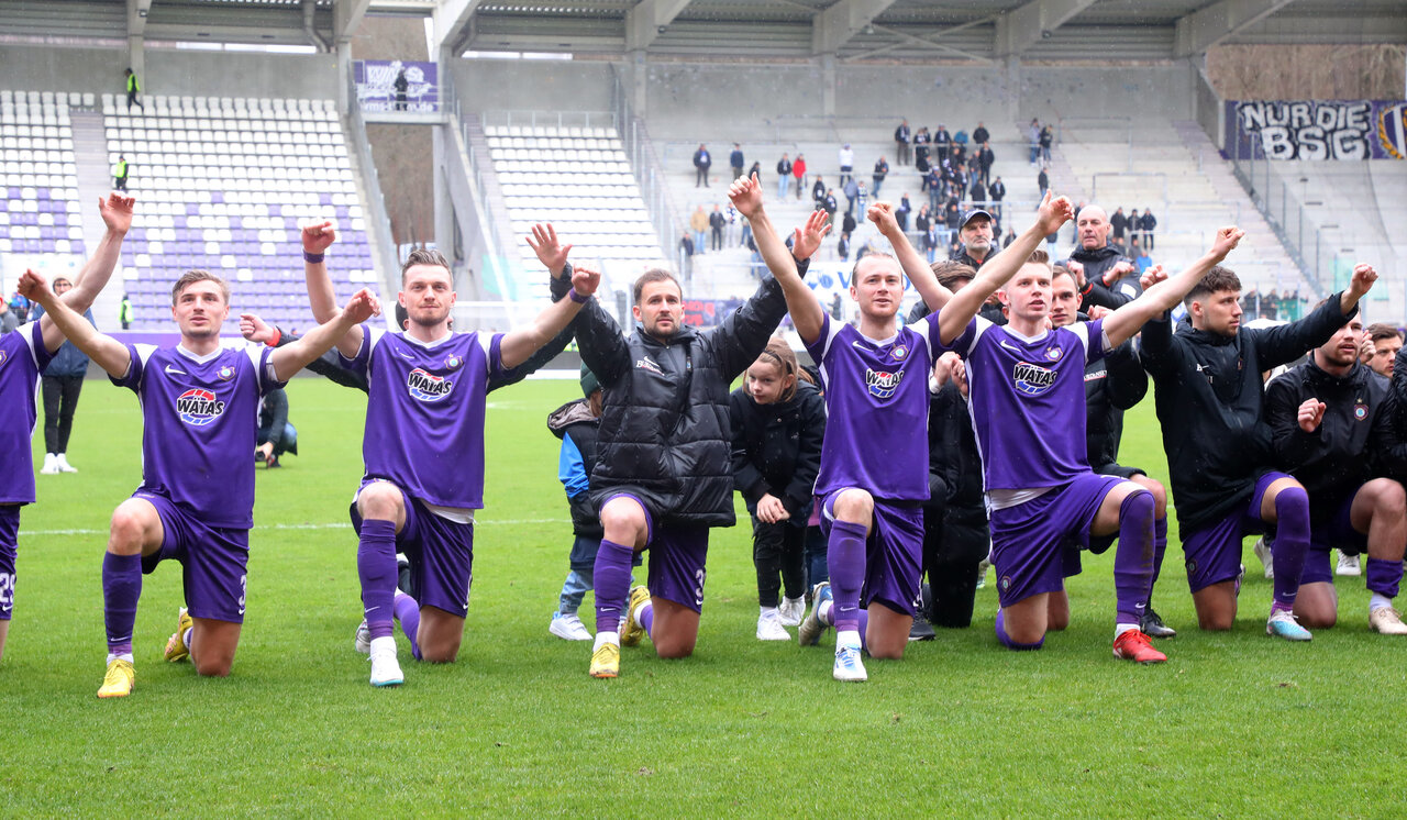 Ein echter Arbeitssieg - nach der schwarzen Woche und drei Niederlagen in Serie liefern unsere Veilchen die richtige Antwort und gewinnen mit einer engagierten Leistung verdient mit 1:0 gegen den VfB Oldenburg. Auf Dima ist am Elfmeterpunkt einfach Verlass, genauso wie auf eure Unterstützung! In der Tabelle klettern unsere Männer auf den elften Platz und bauen das Polster auf den Tabellenkeller wieder auf komfortable zehn Punkte aus. Am Oster-Samstag geht es in der 3. Liga weiter. Dann gastieren unsere Veilchen in Halle beim HFC. Auch hier können wir wieder auf eure zahlreiche Unterstützung zählen - gemeinsam mit euch zum Klassenerhalt.