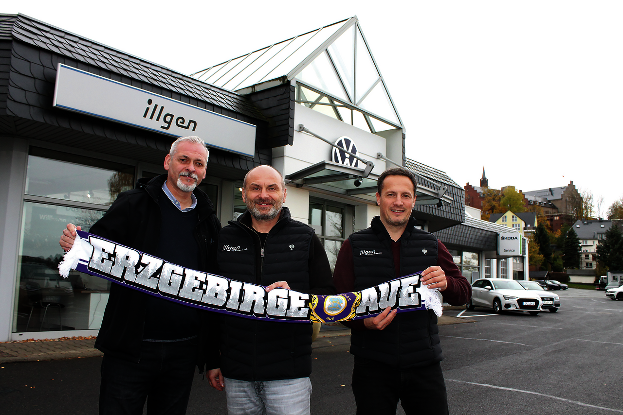 Seit Beginn dieser Saison unterstützt die Autohaus Illgen GmbH den FC Erzgebirge als Co-Sponsor. „Natürlich möchten wir die Bühne des großen, populären Vereins nutzen, um als mittelständisches erzgebirgisches Unternehmen noch bekannter zu werden. Doch vor allem stammen wir, unsere Mitarbeiter und die allermeisten Kunden, von hier. Im Illgen-Team gibt es eine Menge Kollegen, die kein Heimspiel in Aue verpassen und die Mannschaft oft auch auswärts unterstützen. Bei den Mitarbeitern kommt es super an, dass unser Betrieb die Veilchen unterstützt. So ein Sponsoring ist halt auch Patriotismus für die Region”, begründet Marcus Wolf das Engagement. Gemeinsam mit Udo Zybarth ist er Geschäftsführer des Autohauses.