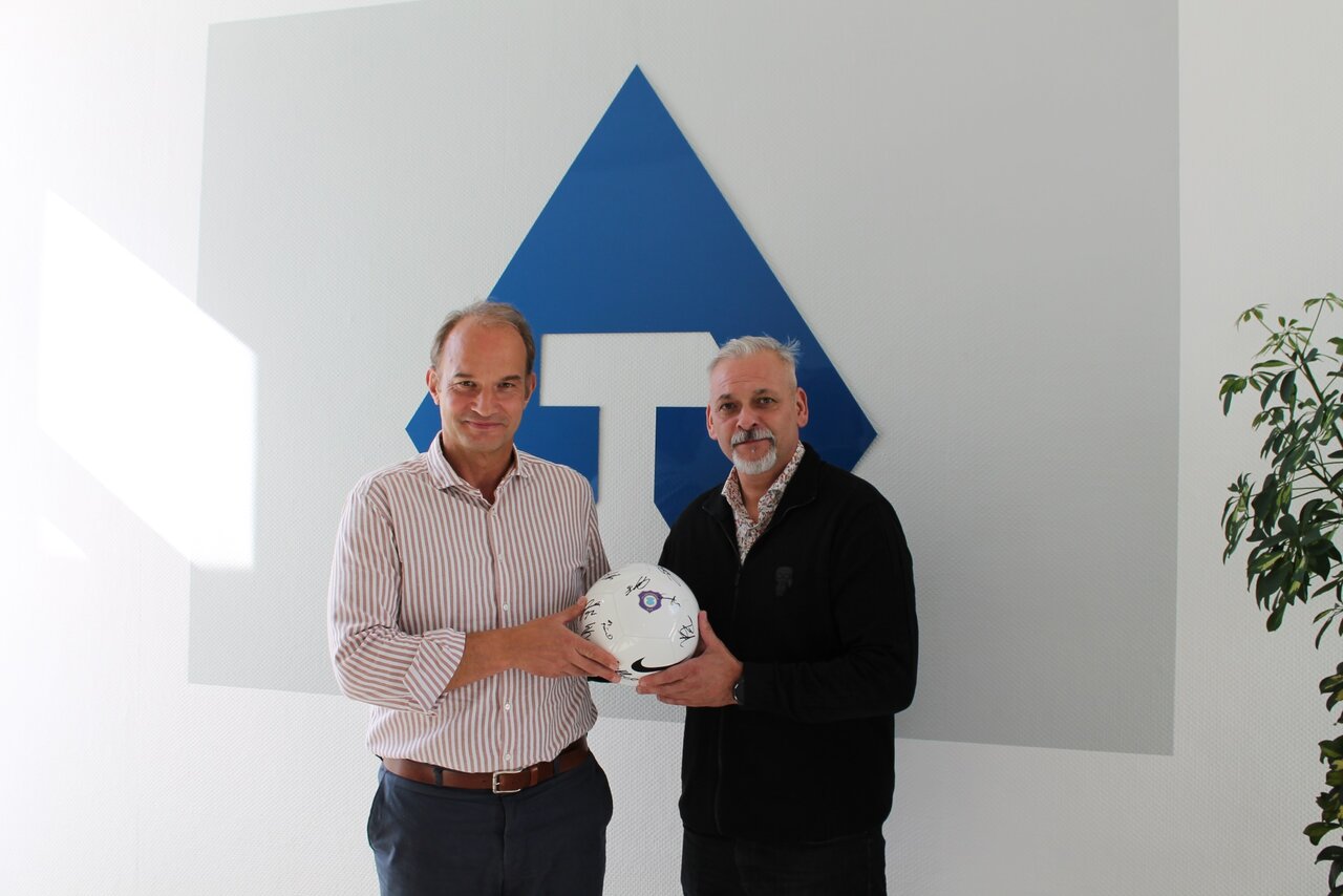 Seit 2006 unterstützt die Auerhammer Metallwerk GmbH den FC Erzgebirge Aue als Co-Sponsor. „Wir sind einer der größten Industrie-Arbeitgeber hier im Westerzgebirge und fühlen uns der Region verpflichtet. Unser Unternehmen steht zu seiner sozialen und gesellschaftlichen Verantwortung. Deshalb werden wir weiterhin unseren Beitrag leisten, damit der FC Erzgebirge Aue in der 3. Liga sicher bestehen kann. Das bin ich auch den Mitarbeitern schuldig, die sich mit unserem Kumpelverein identifizieren und mitfiebern”, bekräftigt Geschäftsführer Dr. Robert Krumbach die Partnerschaft gegenüber FCE-Marketingleiter Enrico Barth. Der war am Montag dieser Woche in den Auer Traditionsbetrieb gekommen, um sich im Namen des Vereins für die zuverlässige finanzielle Hilfe zu bedanken. „Einheimische Unternehmen wie das Auerhammer Metallwerk sind die Basis des FC Erzgebirge Aue, sie halten in guten wie schlechten Zeiten zu uns. Ich besuche solche Betriebe auch deshalb gern, weil man hier unmittelbar erlebt, welche Spitzenleistungen in Forschung, Entwicklung und Produktion im Erzgebirge entstehen”, sagt Enrico Barth.
