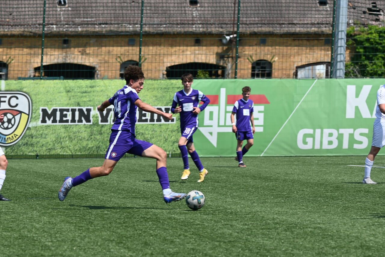 Bei heißen Temperaturen ging es in Grimma um die nächsten Punkte. In den ersten Minuten des Spiels gab es Chancen auf beiden Seiten, aber keine der Mannschaften konnte diese nutzen. In der 19. Minute gelang es Carlo Rank, die Veilchen in Führung zu bringen. Dieses Tor gab den Spielern einen zusätzlichen Schub, und sie drängten weiterhin auf das gegnerische Tor. Kurz vor der Halbzeit konnten unsere Jungs, ihre Führung auf 2:0 auszubauen. Erneut war Carlo Rank der Torschütze. Mit diesem komfortablen Vorsprung ging es in die Halbzeitpause.