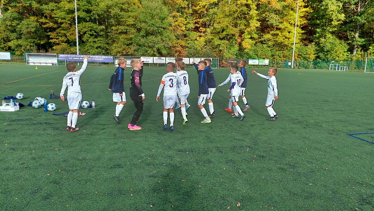 Leider fielen mit Magnus, Benjamin und Pepe gleich drei Spieler aus. Dafür verstärkte uns Franz von der U15. Auf einem schwer bespielbaren Platz starten die Jungs gut ins Spiel, bereits in der ersten Minute hatte Erik die große Chance auf die Führung. Danach rannten die jungen Veilchen weiter gegen einen tief stehenden Gegner an, der alles hineinwarf und mit Mann und Maus sein Tor verteidigte. Trotzdem gab es viele gute Möglichkeiten zur Führung. Kurz vor der Pause traute sich der Gegner das erste Mal gefährlich in die Hälfte der Lila-Weißen. Durch schlechte Absicherung und einen Ballverlust musste Henk leider die Notbremse ziehen, konnte somit aber immerhin die Großchance der Klaffenbacher verhindern. Damit spielten wir ab der 30. Minute in Unterzahl. Das wirkte sich aber kaum auf unser Spiel aus und es wurde weiter mutig nach vorne gespielt. Mit einem 0:0 ging es in die Pause. Nach dem Seitenwechsel starteten die jungen Veilchen gleich wieder ihre Angriffsversuche und diesmal belohnte sich die Mannschaft und erzielte das ersehnte erste Tor. Nach einem Pass von Magnus schob Richard überlegt ein. Sofort versuchte die U14 nachzulegen und das zweite Tor zu machen. In der 64. Spielminute war es erneut Richard, der gefährlich in den Strafraum eindrang und vom gegnerischen Torhüter gefoult wurde. Fyn übernahm Verantwortung und verwandelte den fälligen Elfmeter sicher zum verdienten 2:0 der Auer. Es war das erwartete schwere Spiel gegen einen kampfstarken Gegner auf einem tiefen Platz, welches die Veilchen aber in Unterzahl gewinnen konnten.