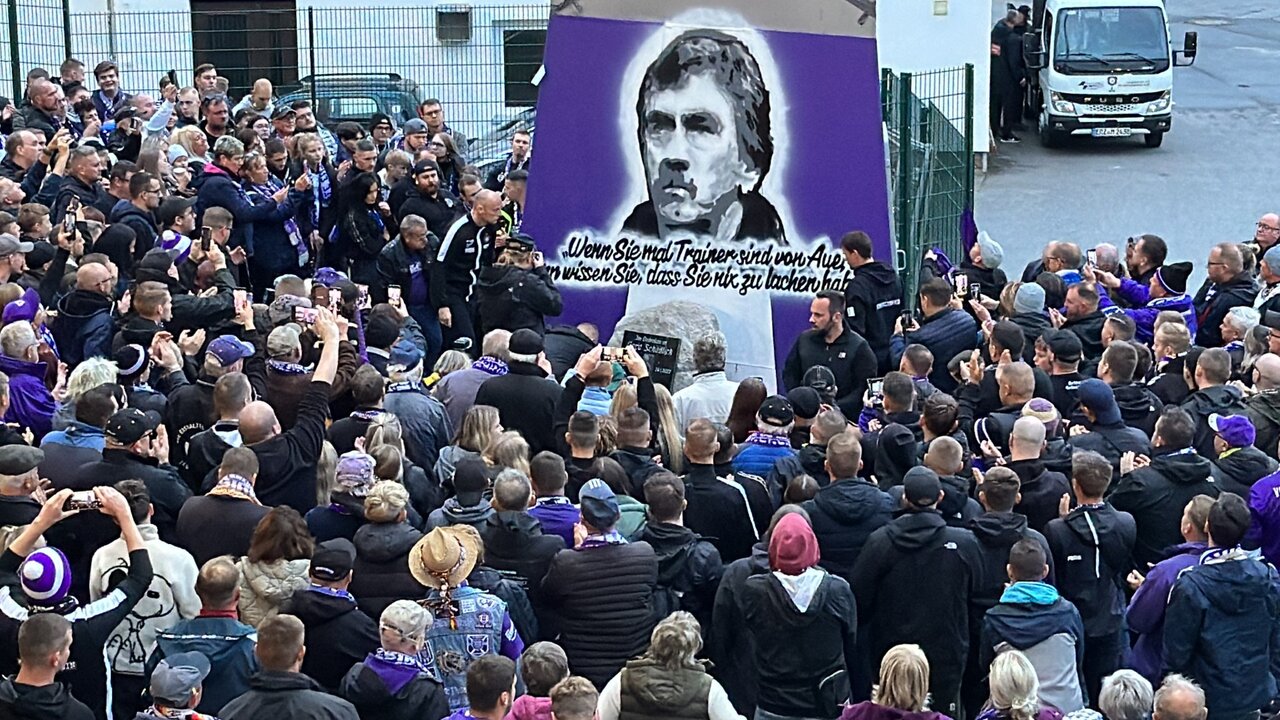 Emotionaler Moment am Rande des Drittligaspiels gegen den SSV Ulm - vor dem Anpfiff enthüllte die Erzbrigade und Vertreter des Vereins die neu geschaffene Gedenkstätte zu Ehren von Trainerlegende Gerd Schädlich. Vor mehreren hundert Veilchen-Fans sprachen Schädlichs ehemalige Spieler Matthias Heidrich und Jörg Emmerich sowie Vertreter der aktiven Fanszene über ihre Erinnerungen an den Trainer, der im Januar 2022 im Alter von 69 Jahren von uns ging.