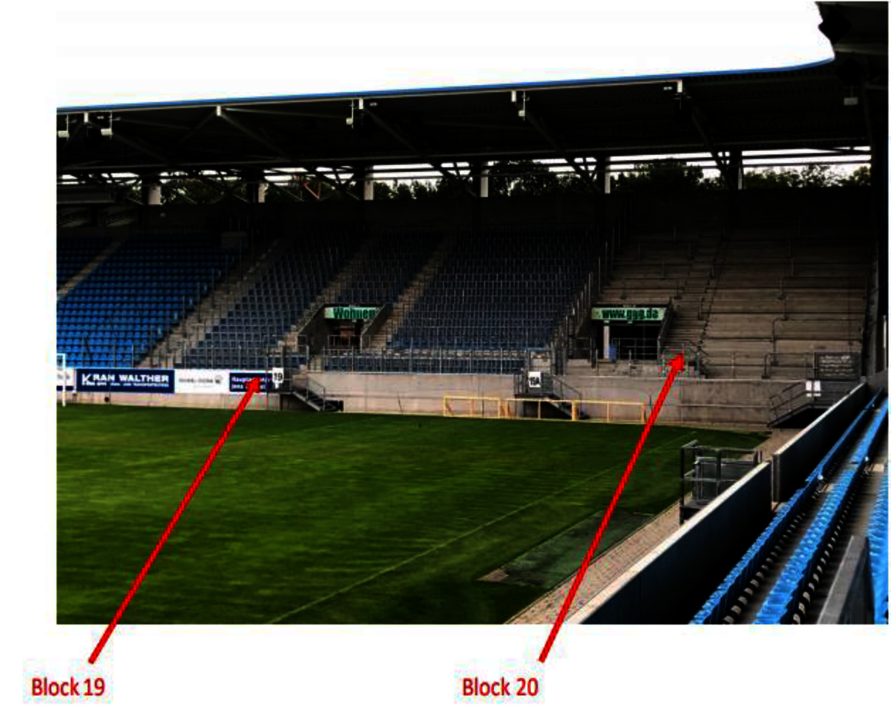 - Stehplätz bzw. bei Bedarf Vario Seats Plätze in Block 19