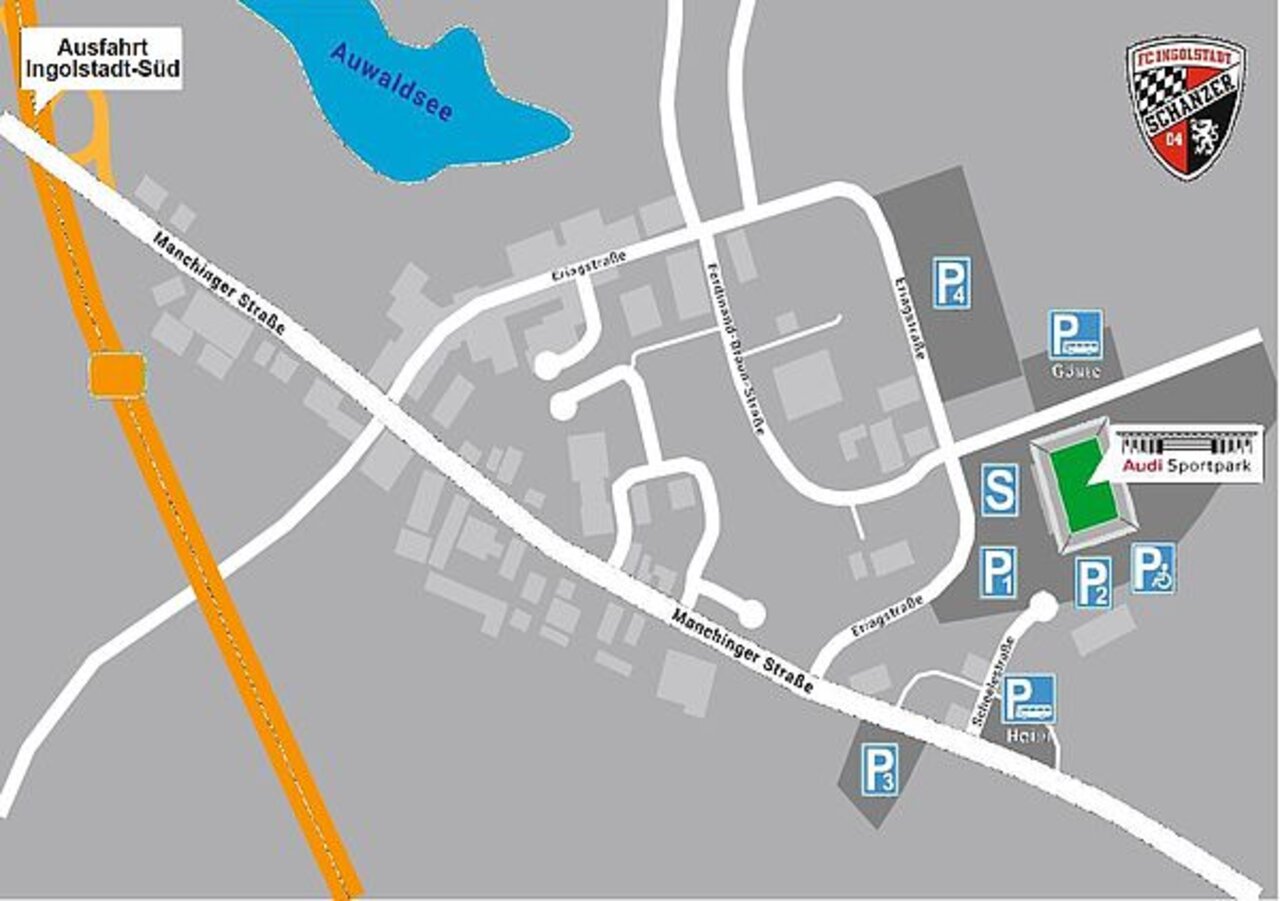 Fahren Sie bei der Ausfahrt "Ingolstadt-Süd" von der A9 ab, biegen Sie links ein auf die Man-chinger Straße Richtung Ingolstadt-Süd/Gewerbegebiet und folgen Sie dem Straßenverlauf circa 2 km. Die Parkplätze sind ausgeschildert.