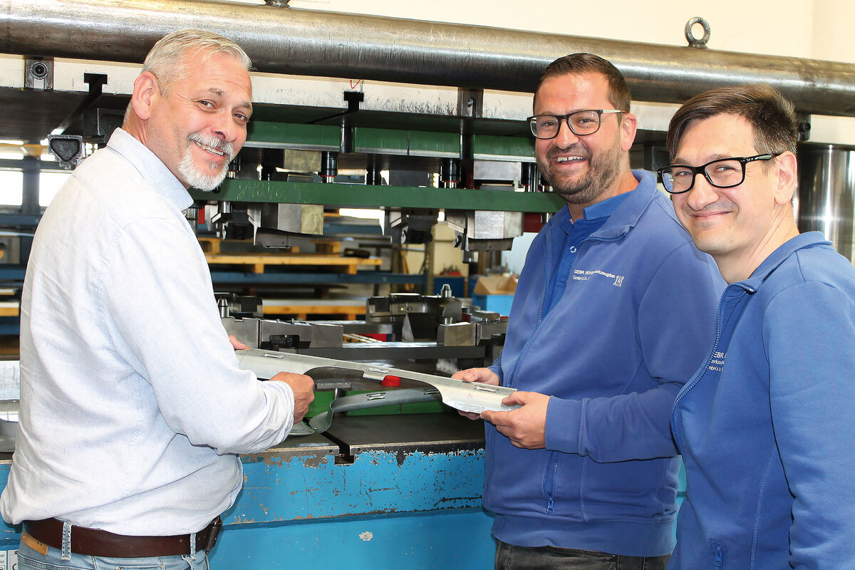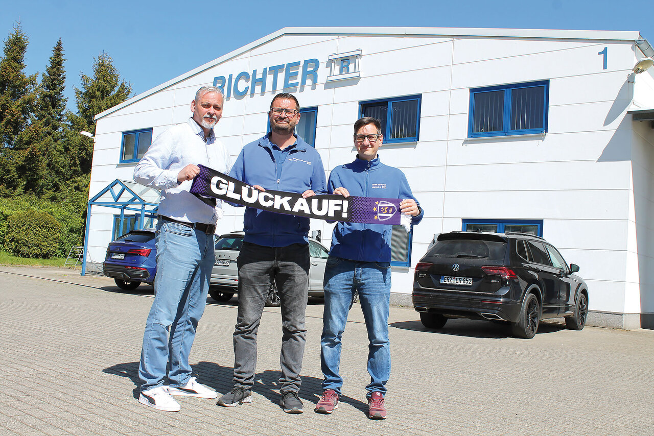 Den vier modernen Hallen und den Maschinen sieht man die lange Firmengeschichte auf den ersten Blick so wenig an wie dem Erzgebirgsstadion die Wismut-Tradition. Doch wie im Kumpelverein wird sie auch bei der Gebr. Richter Werkzeugbau GmbH & Co. KG hochgehalten. Im Fall des Grünhainer Familienunternehmens reichen die Wurzeln sogar tiefer als bis 1946, sondern ins Jahr 1912 zurück. Doch nicht nur Tradition verbindet, sondern mehr noch die Liebe zum Fußball und zur Region. Grund genug für Geschäftsführer Christian Richter und seinen Bruder Daniel, die Veilchen in den kommenden beiden Jahren als Sponsor zu unterstützen. Den entsprechenden Vertrag besiegelten beide sowie FCE-Marketingchef Enrico Barth am 30. Mai in Grünhain.