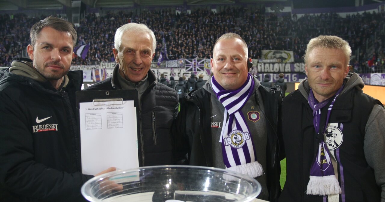 Im Rahmen des Heimspiels gegen den SC Verl am Freitagabend wurde die Gruppenphase des Gerd Schädlich Gedenkturniers ausgelost. Als "Losfee" fungierten, der langjährige Wegbegleiter von Gerd Schädlich, Christoph Franke und "Hook", als Vertreter der aktiven Fanszene.