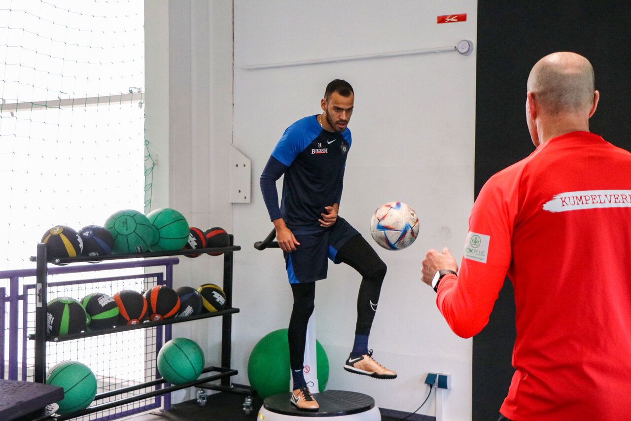 Das Aufbautraining von Steffen Nkansah übernimmt natürlich Athletiktrainer Werner Schoupa. Werner, worauf achtest du jetzt speziell bei den Übungen?