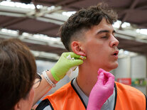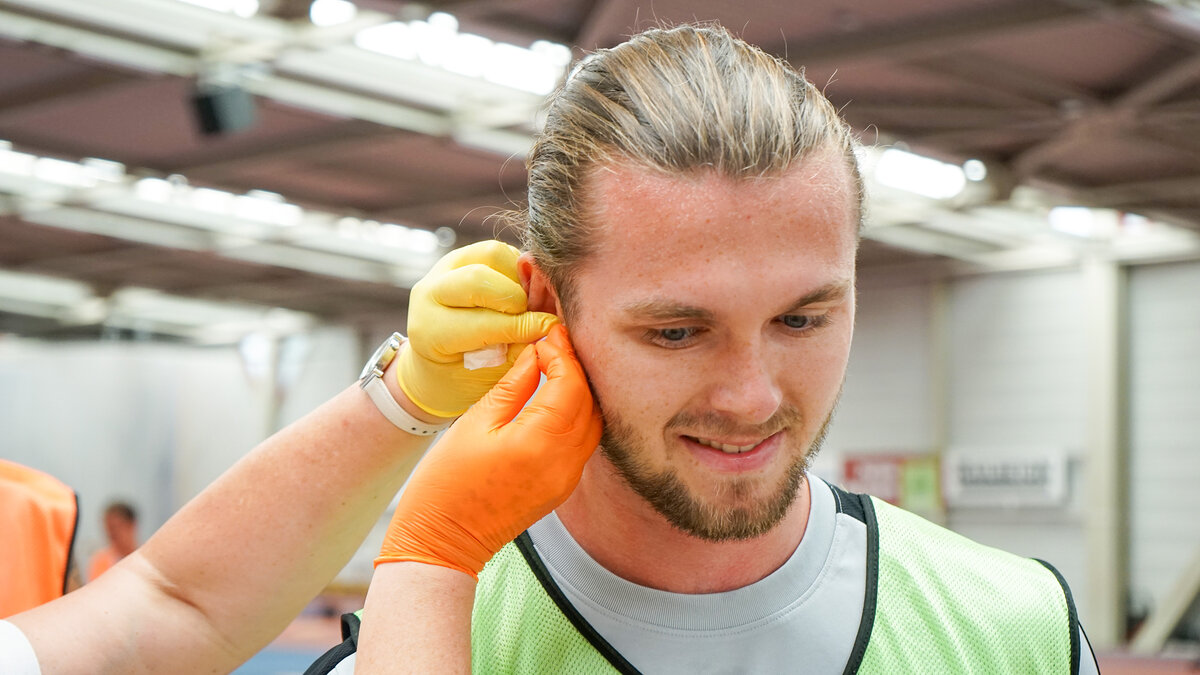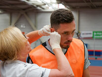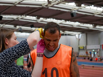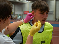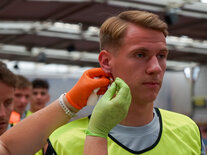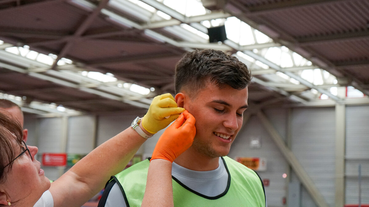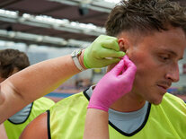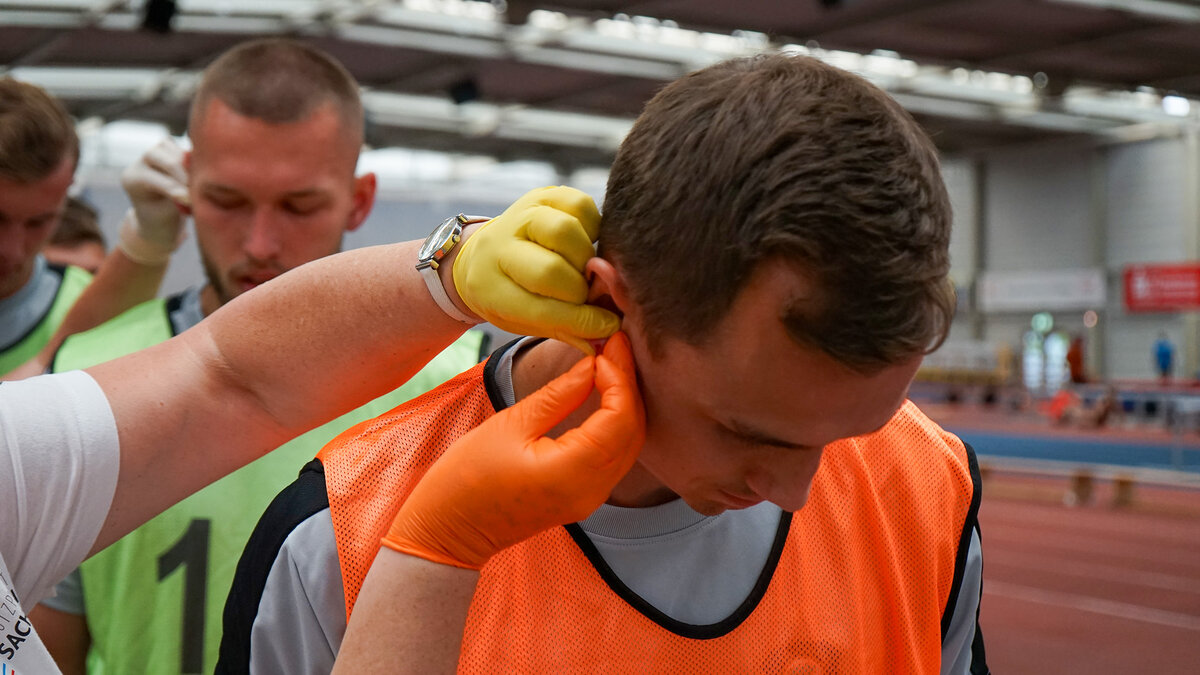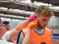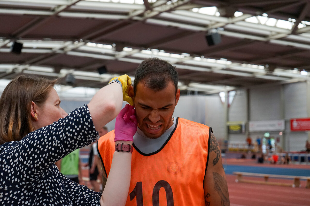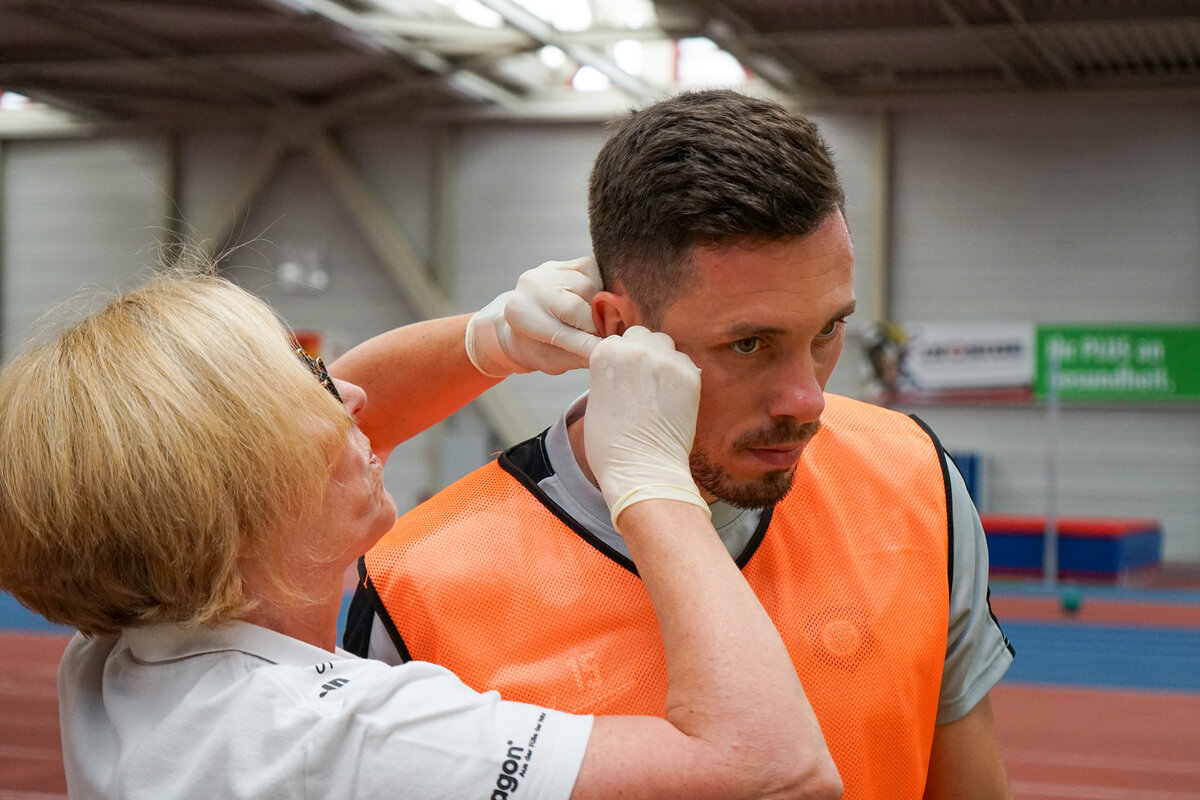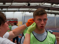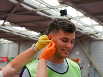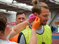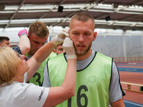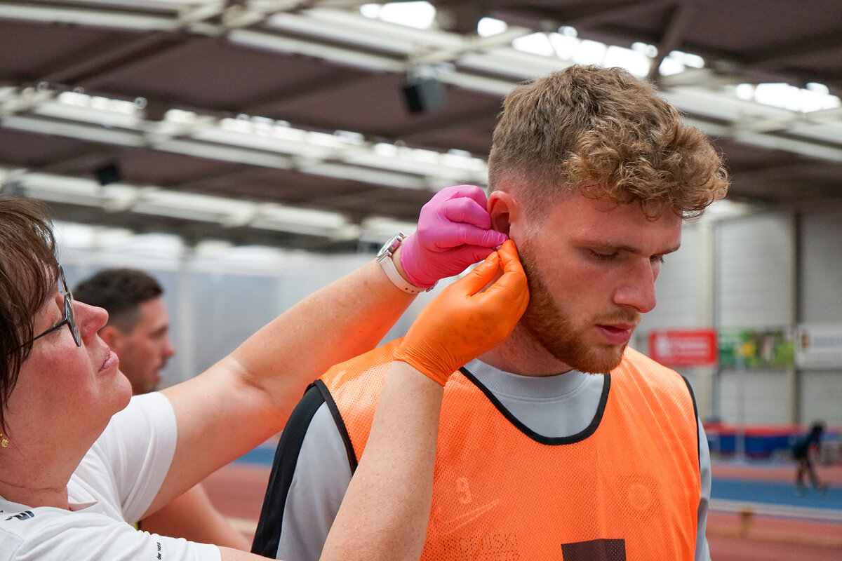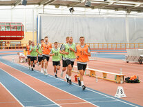 In drei Durchgängen wurden unsere Jungs auf ihre Leistungsfähigkeit geprüft. Vor dem Test wurden zunächst Brustgurte angelegt. Als danach der erste 'Pieks' überstanden und etwas Blut abgenommen war, ging es auf die Laufbahn. Auf dieser drehten die Veilchen dann ihre Runden in verschiedenen Intensitäten. Nach jeder Stufe wurde erneut etwas Blut 'abgezapft'. Anschließend ging's weiter, dann mit noch höherer Geschwindigkeit.