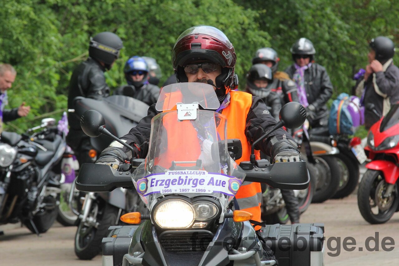 Zusammen mit Malermeister Uwe Stübner ist Rüdiger Co-Chef und Ordner der lila-weißen Biker. Auf jeden Fall soll es am letzten Spieltag dieser Saison nach Bayreuth gehen: „Jeder von uns hofft, dort entspannt den Klassenerhalt feiern zu können.”