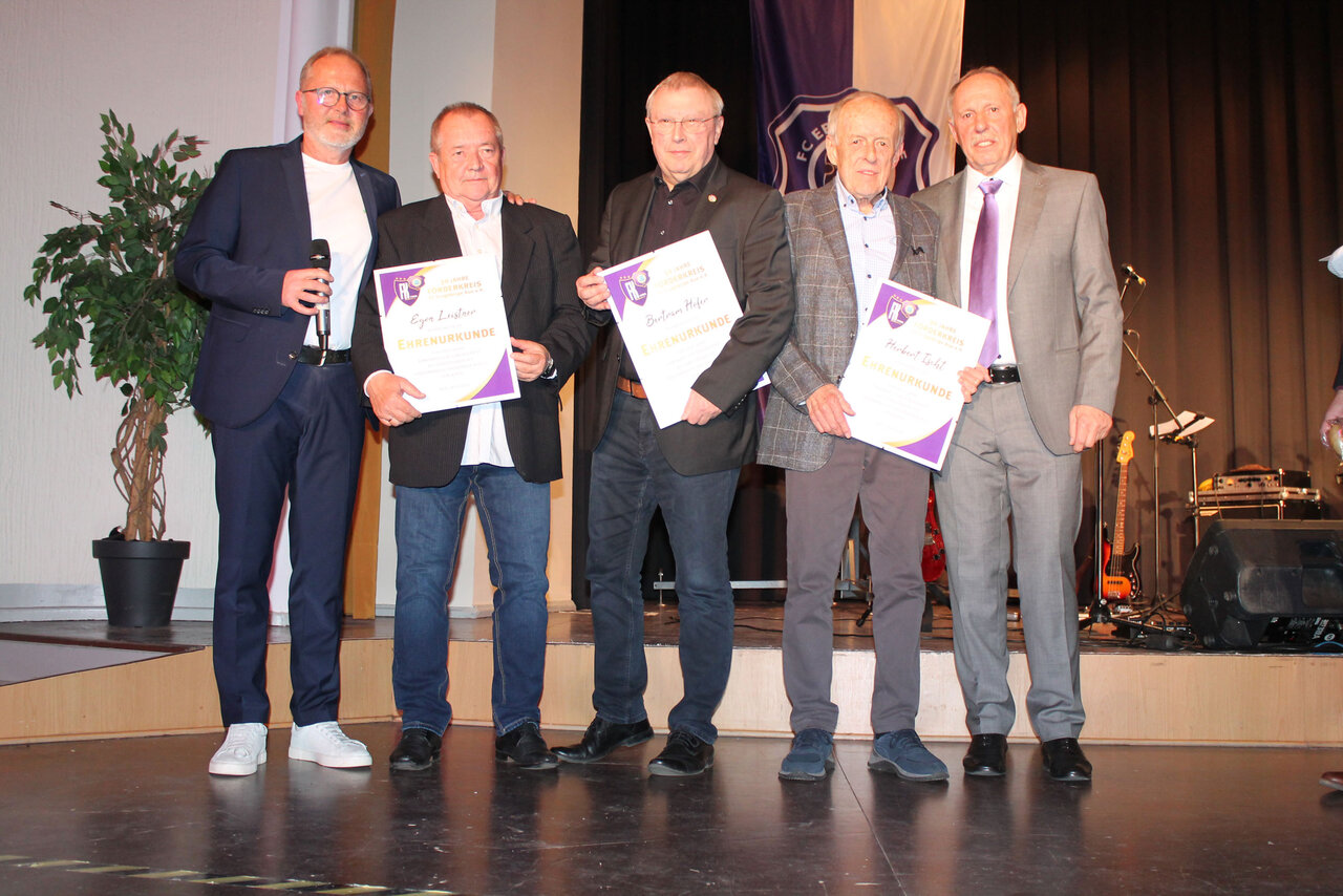 „Es war eine rundum gelungene Feier, aus der wir Kraft schöpfen können für die weitere Arbeit beim FCE und im Förderkreis”, freut sich „Manni” Jahn, der eingangs der Gala verdiente Weggefährten würdigte. Mit Bertram Höfer, Herbert Ischt und Egon Leistner erhielten drei Sportfreunde und Sponsoren der ersten Stunde Ehrenurkunden, die 1993 und in den folgenden Jahrzehnten den Förderkreis führten beziehungsweise maßgeblich belebten. Am 10. Februar 1993 hatten 16 erzgebirgische Firmen den Förderkreis gegründet, der heute über 250 Mitstreiter vereint.