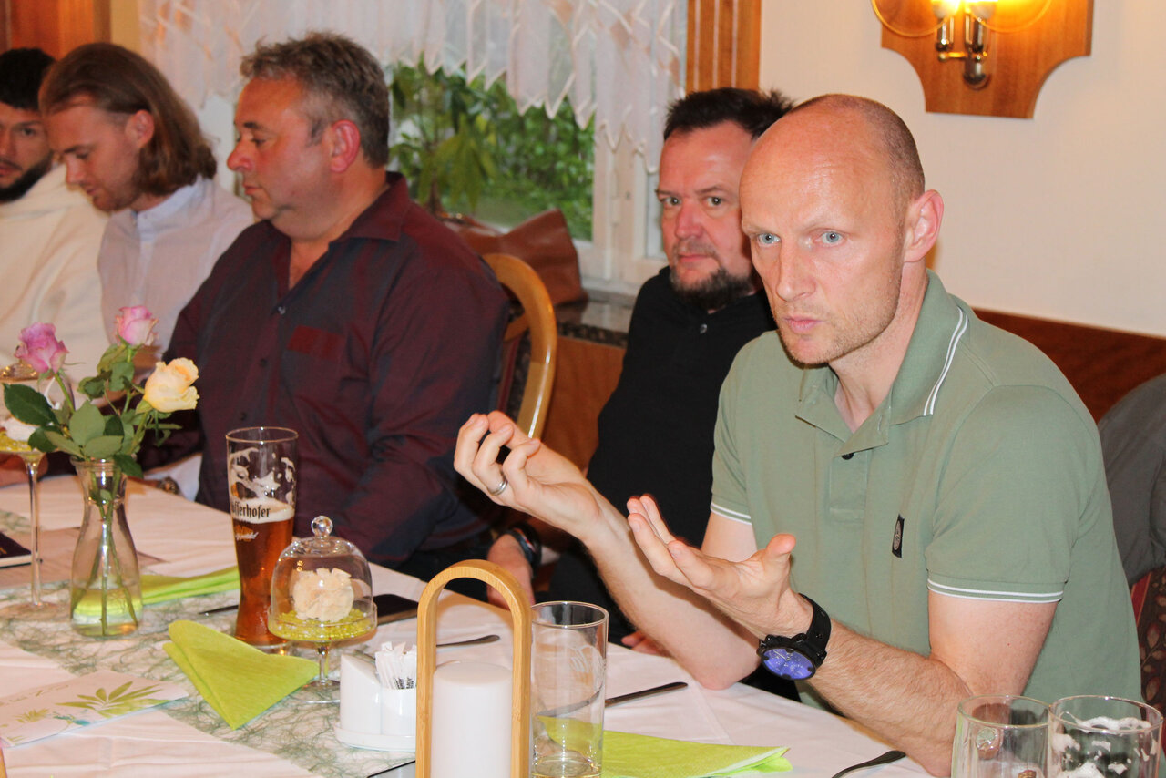 In einer lockeren Dienstagabendrunde diskutierten die Gäste zudem die aktuelle Situation beim FC Erzgebirge. Eine kritisch-ehrliche Analyse und einen Ausblick auf Pläne für die neue Saison gab dazu Matthias Heidrich. Bei aller Kritik sei das Hauptziel, der Klassenerhalt, aber vier Spieltage vor Schluss erkämpft worden, so der Sportgeschäftsführer. Der Verein wolle verstärkt darauf setzen, eigenen Talenten Chancen im Profikader zu geben. Auch die Spieler Marco Schikora und Korbinian Burger sprachen offen Probleme in der Mannschaft an, insbesondere Gruppenbildungen im Kader. Der Sponsorenabend vom 23. Mai dürfe keine Eintagsfliege bleiben, man wolle in der Region des oberen und mittleren Erzgebirges FCE-Sponsoren mehr bieten und regelmäßige Treffen organisieren, so der Regionalverantwortliche Mario Schöne. Gleiches wünscht sich Ines Reinhold, die sich um die Aue-Sponsoren in Chemnitz und Umgebung kümmert. Dort werde demnächst zu einem Sponsorenabend eingeladen.
